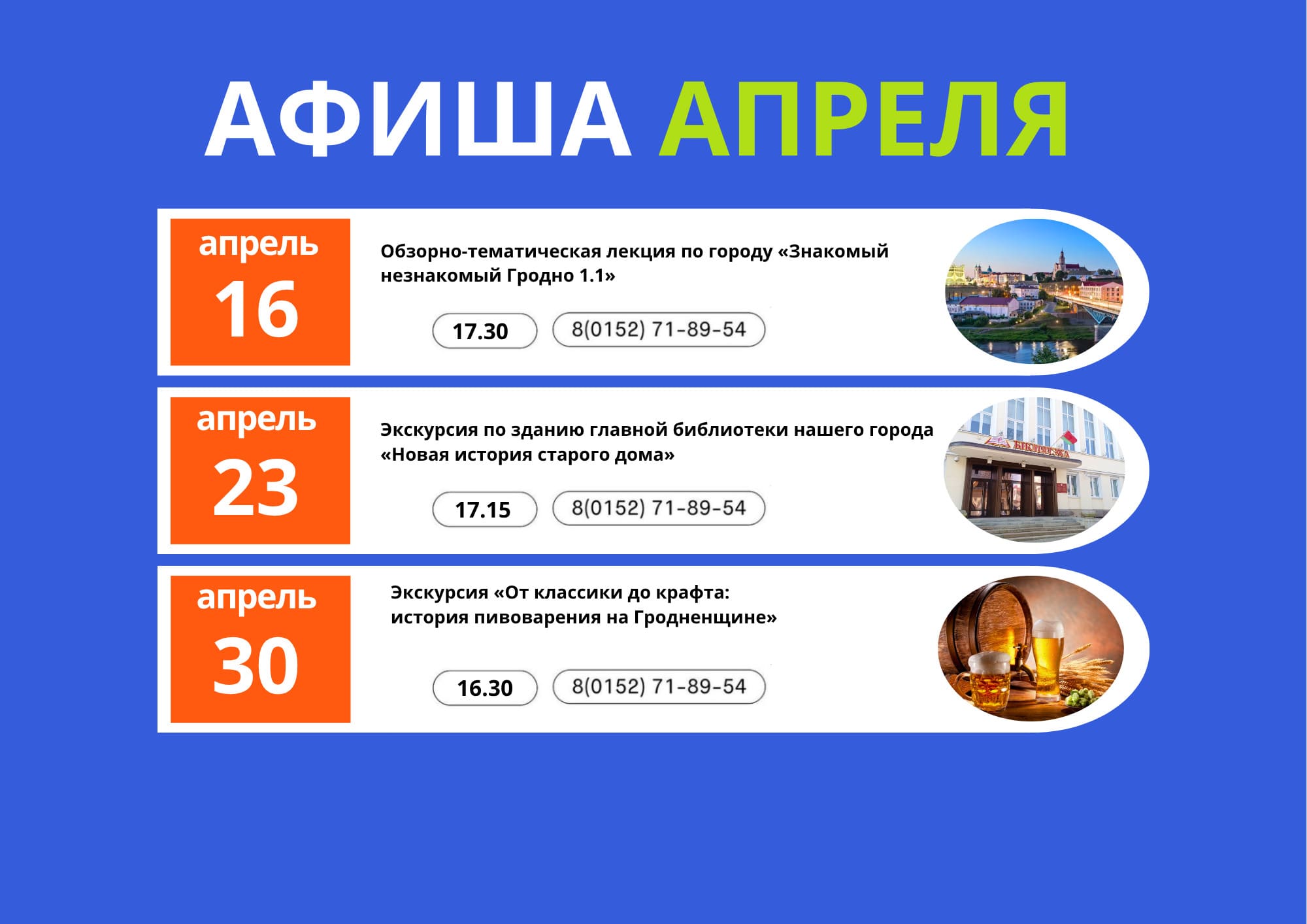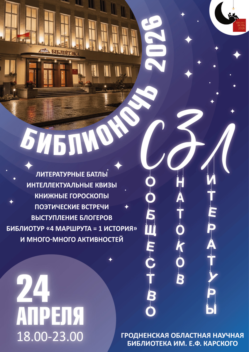 17 апреля в 10.00 для учащихся ГУО «Средняя школа № 2 имени В.Ю. Саяпина г. Гродно», ул. Советская, 8 (сектор хранения основного фонда)