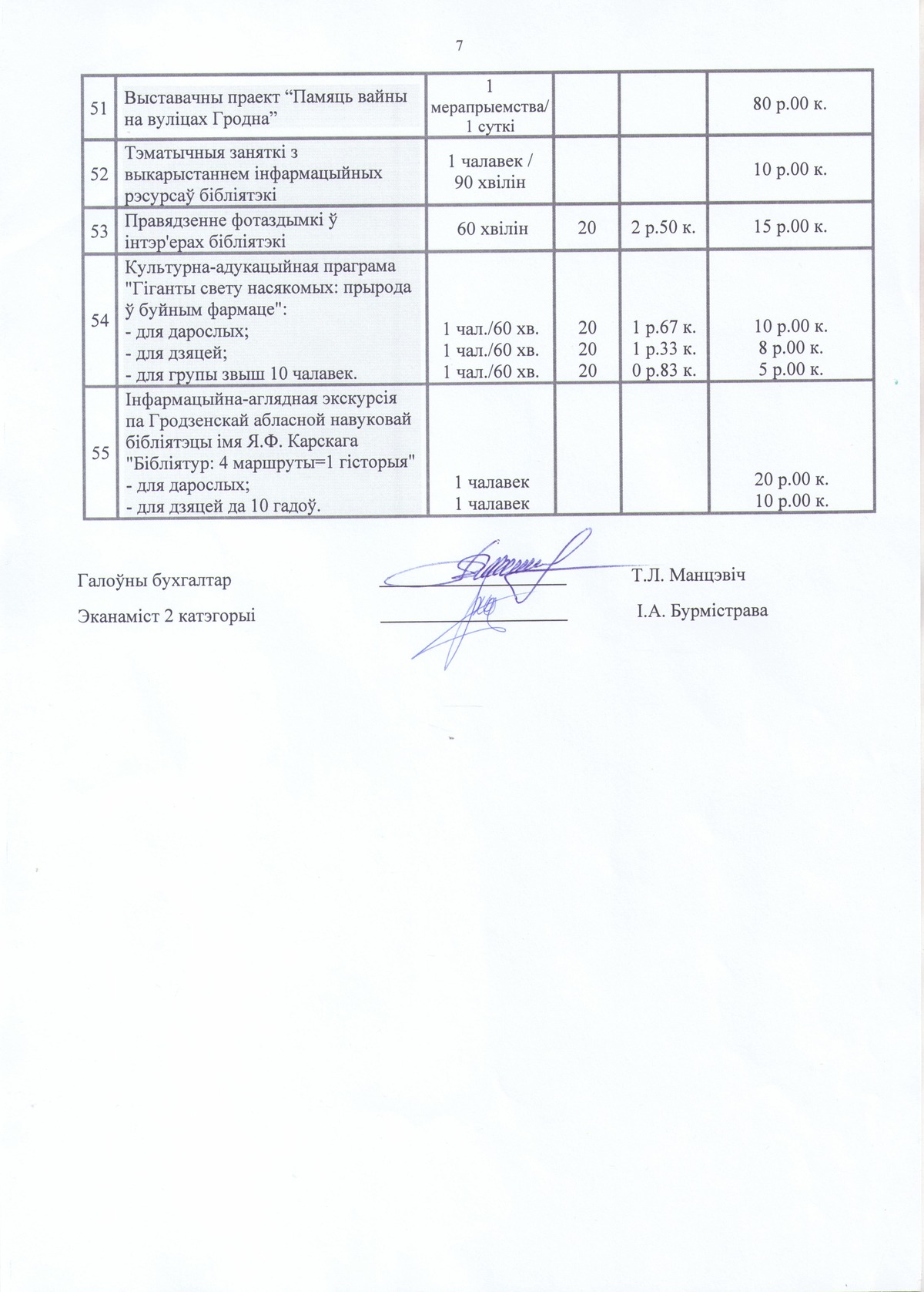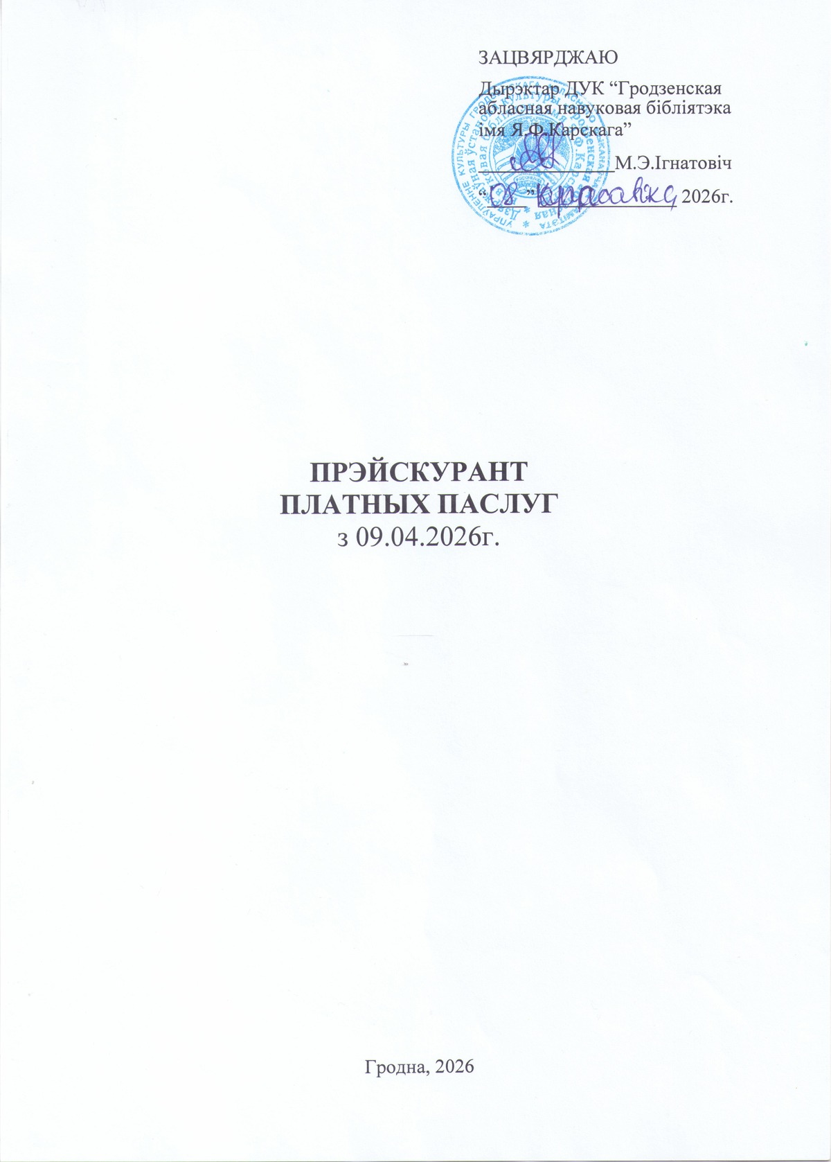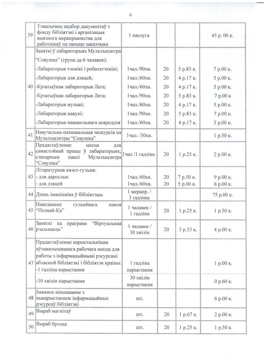 Прэйскурант платных паслуг