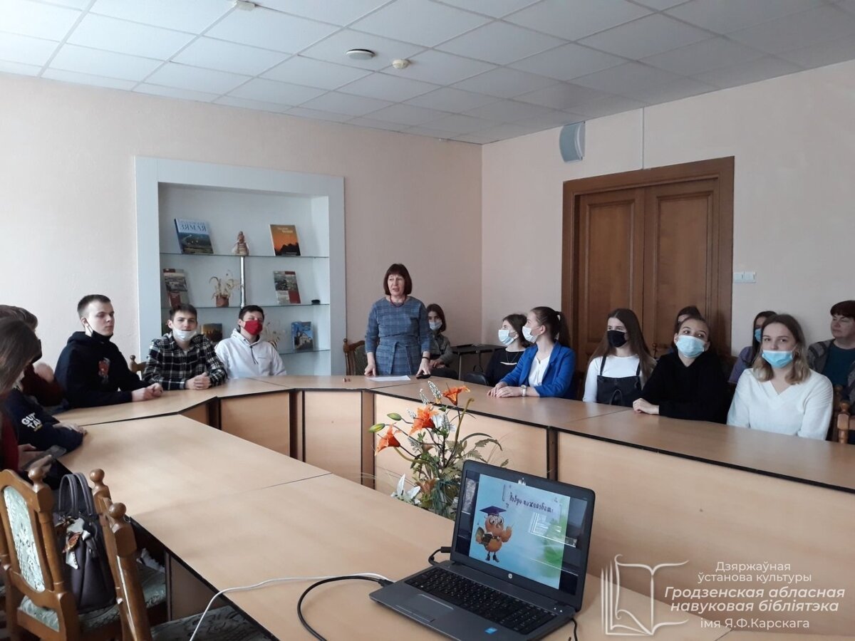 11 сакавіка ў аддзеле інфармармацыйна-бібліяграфічнай работы абласной бібліятэкі прайшоў дзень інфармацыі “Сучасныя інфармацыйныя рэсурсы па праву”. Мерапрыемства наведалі студэнты I курса юрыдычнага факультэта ГрДУ імя Янкі Купалы.