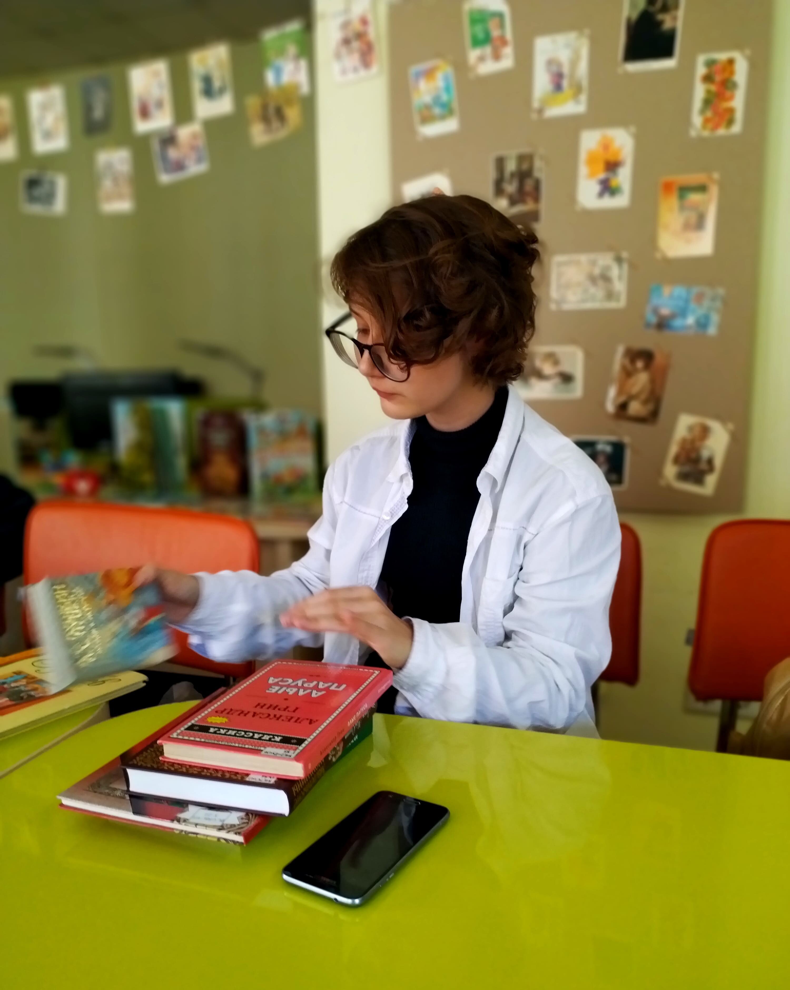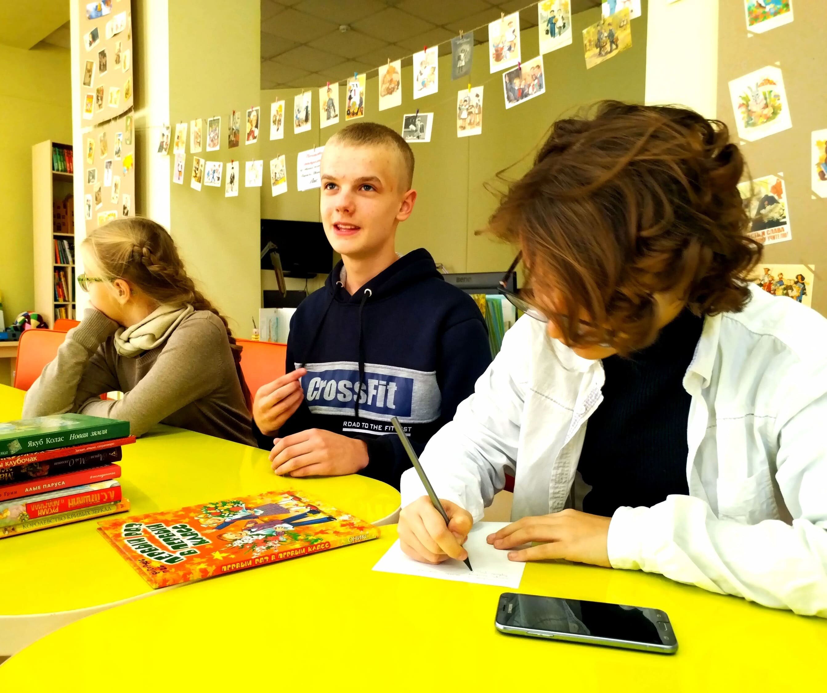 Действуя с книгой и среди книг, подростки разгадывали филворды, вспоминали художественные произведения по цитатам, соотносили тексты с иллюстрациями и делились впечатлениями о прочитанной литературе.