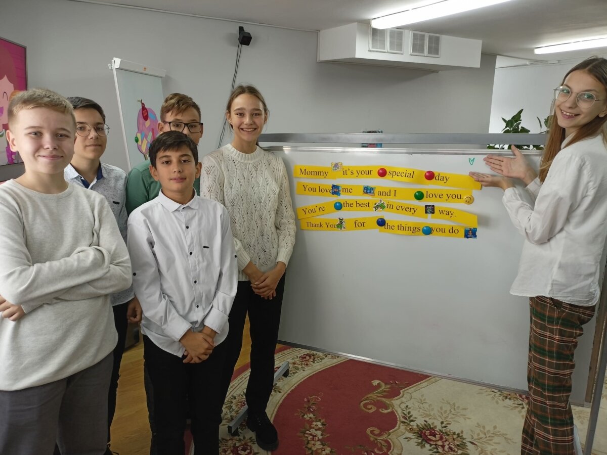 Учащиеся упражнялись в артистизме и посвящали мамам песни, стихи и комплименты на английском языке.