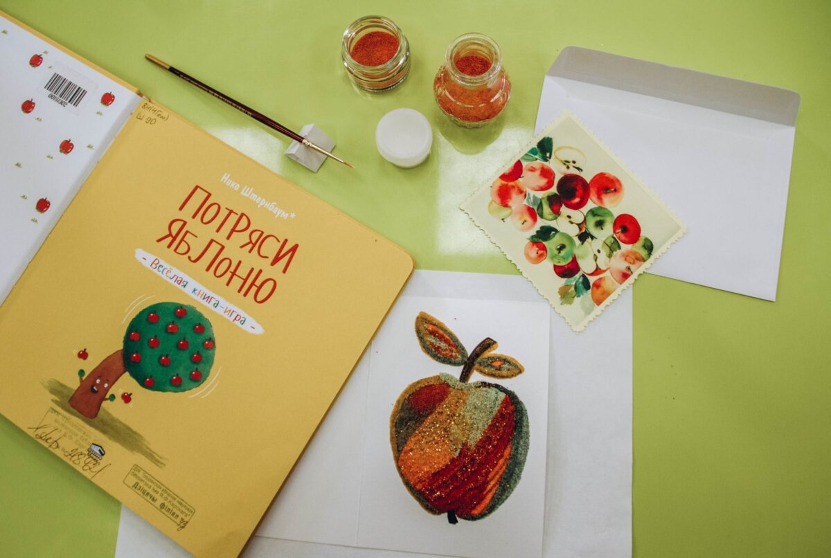 Участники встречи узнали о необычной технике рисования каменной крошкой и освоили основные приёмов работы с кварцевым песком. В творческой атмосфере яблоки на открытках становились сказочно-волшебными, а семейные мастерилки принесли и взрослым, и детям много радости.