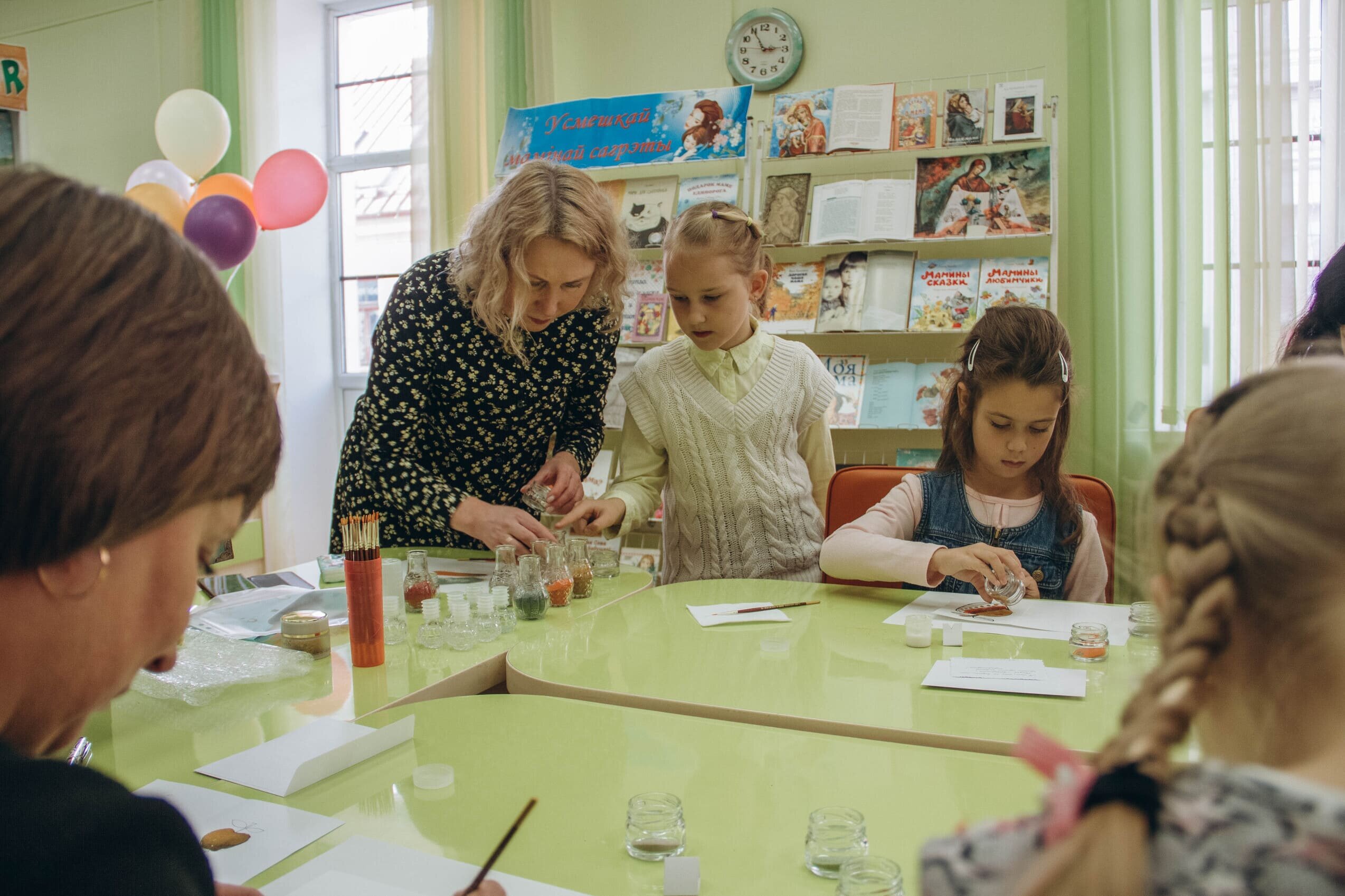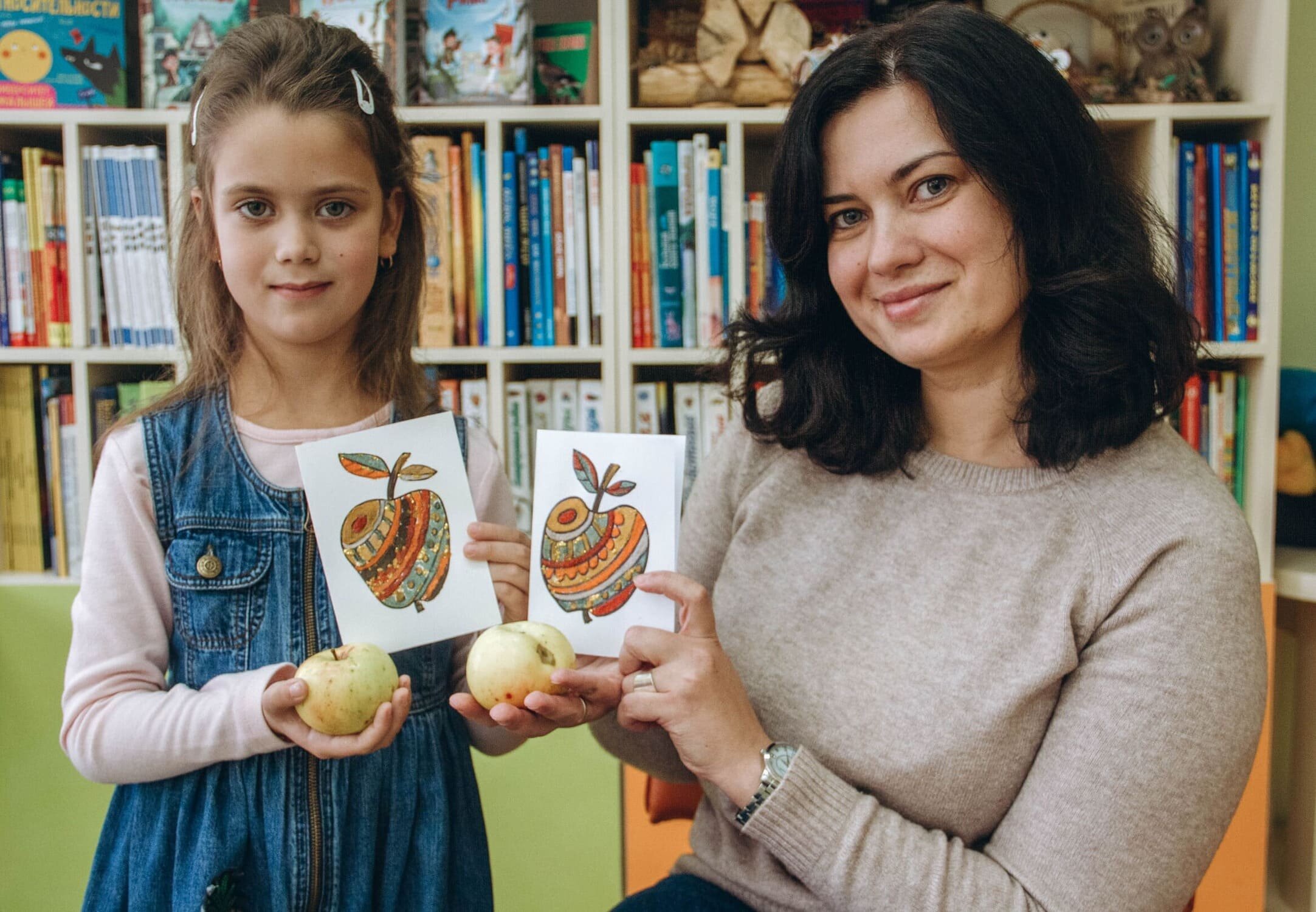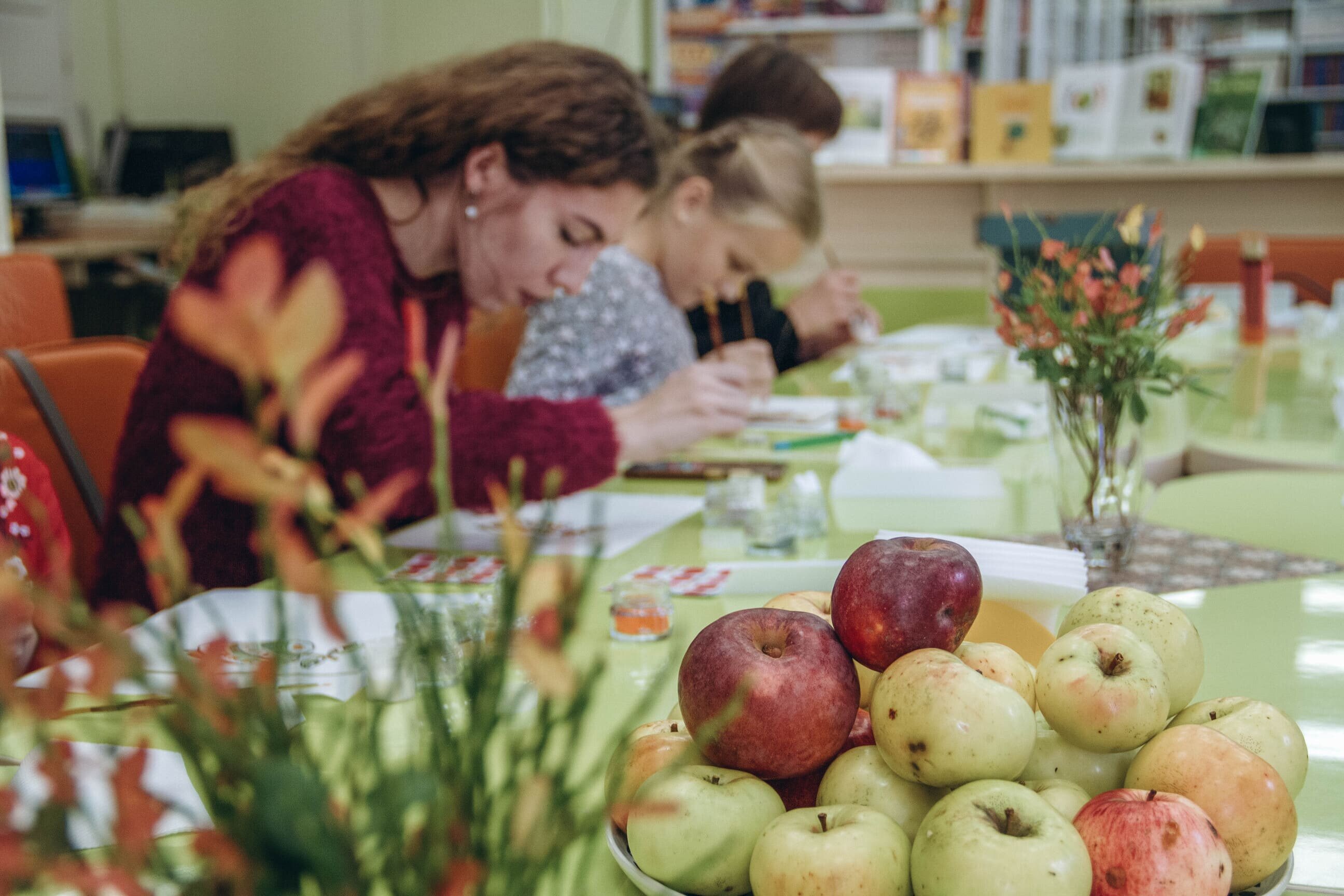 15 октября в детском филиале под руководством Татьяны Сердюковой (студия «Каменная сказка») прошел семейный мастер-класс по изготовлению открыток дроблеными минералами. Взрослые и дети вспомнили сказки, в которых встречается яблоко или яблоня, проявили эрудицию в «Яблочной викторине», познакомились с книгами «с ароматом яблок».
