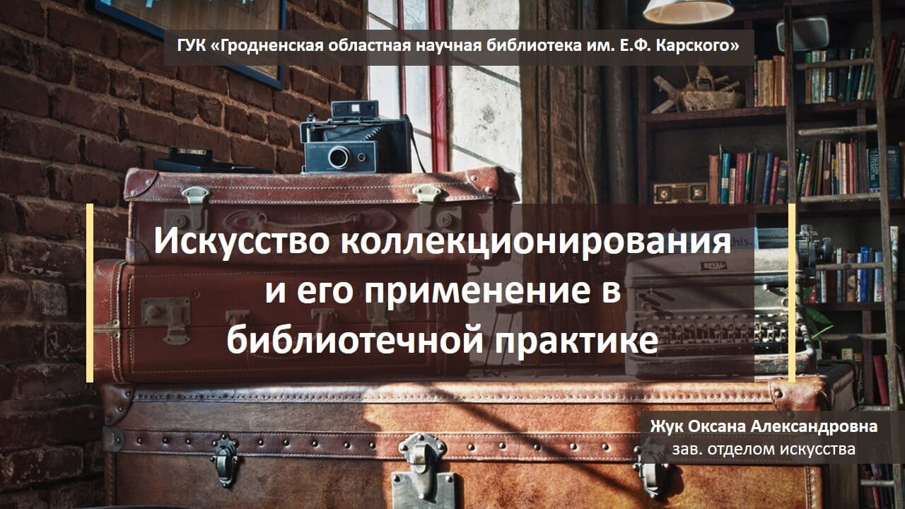 Оксана Александровна рассказала о сотрудничестве Гродненской областной научной библиотеки имени Е.Ф. Карского с коллекционерами города и представила доклад на тему “Искусство коллекционирования и его применение в библиотечной практике”: подробно освятила проект «Прикоснуться к истории», упомянула о ретро-уголках и фотозонах на балах Элизы Ожешко, Днях славянской письменности, квест-играх и других мероприятиях библиотеки.