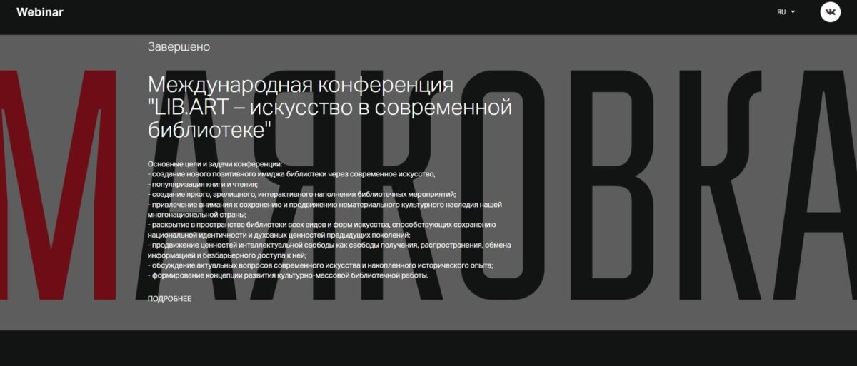 18 октября заведующая отделом искусства Жук Оксана приняла участие в Международной онлайн-конференции «LIB.ART – ИСКУССТВО В СОВРЕМЕННОЙ БИБЛИОТЕКЕ». Организаторами мероприятия выступили сотрудники Калининградской областной юношеской библиотеки имени Владимира Маяковского.