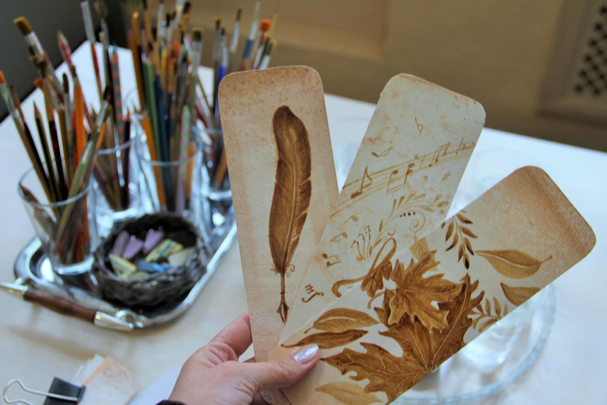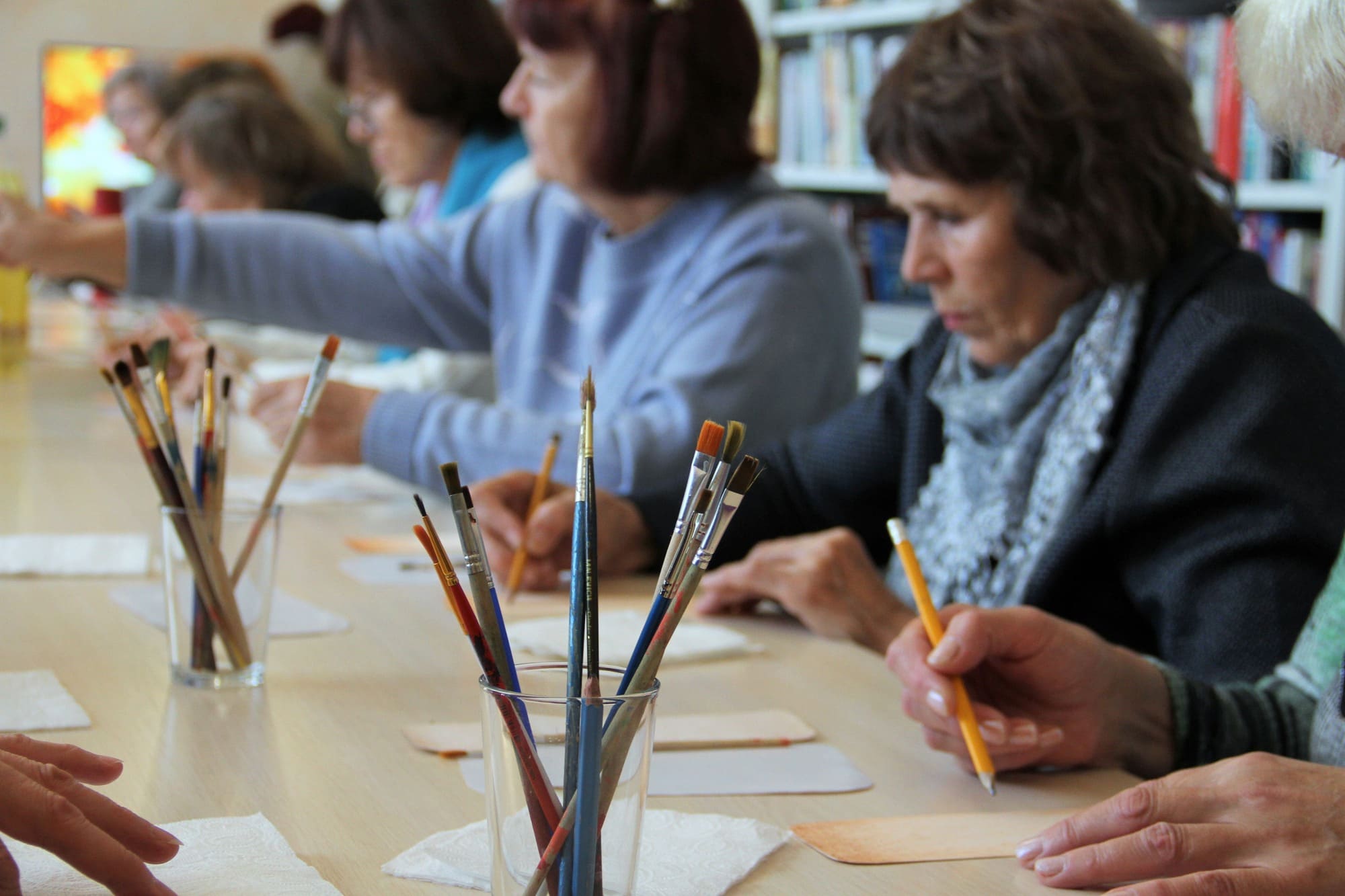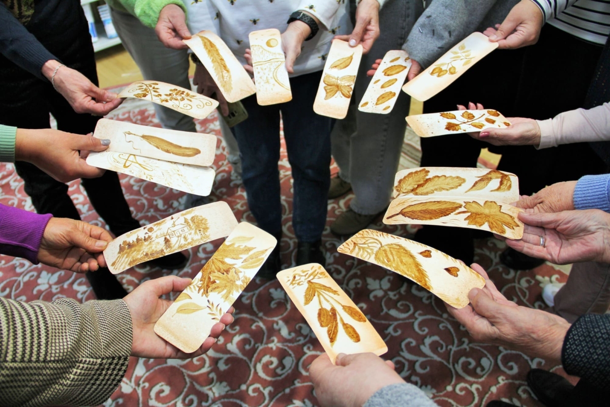 Работник центра ГУ “ЦСОН Октябрьского района г. Гродно” Алла Адамова провела с участниками встречи мастер-класс по кофейной живописи, на котором были изготовлены книжные закладки в дар библиотеке.