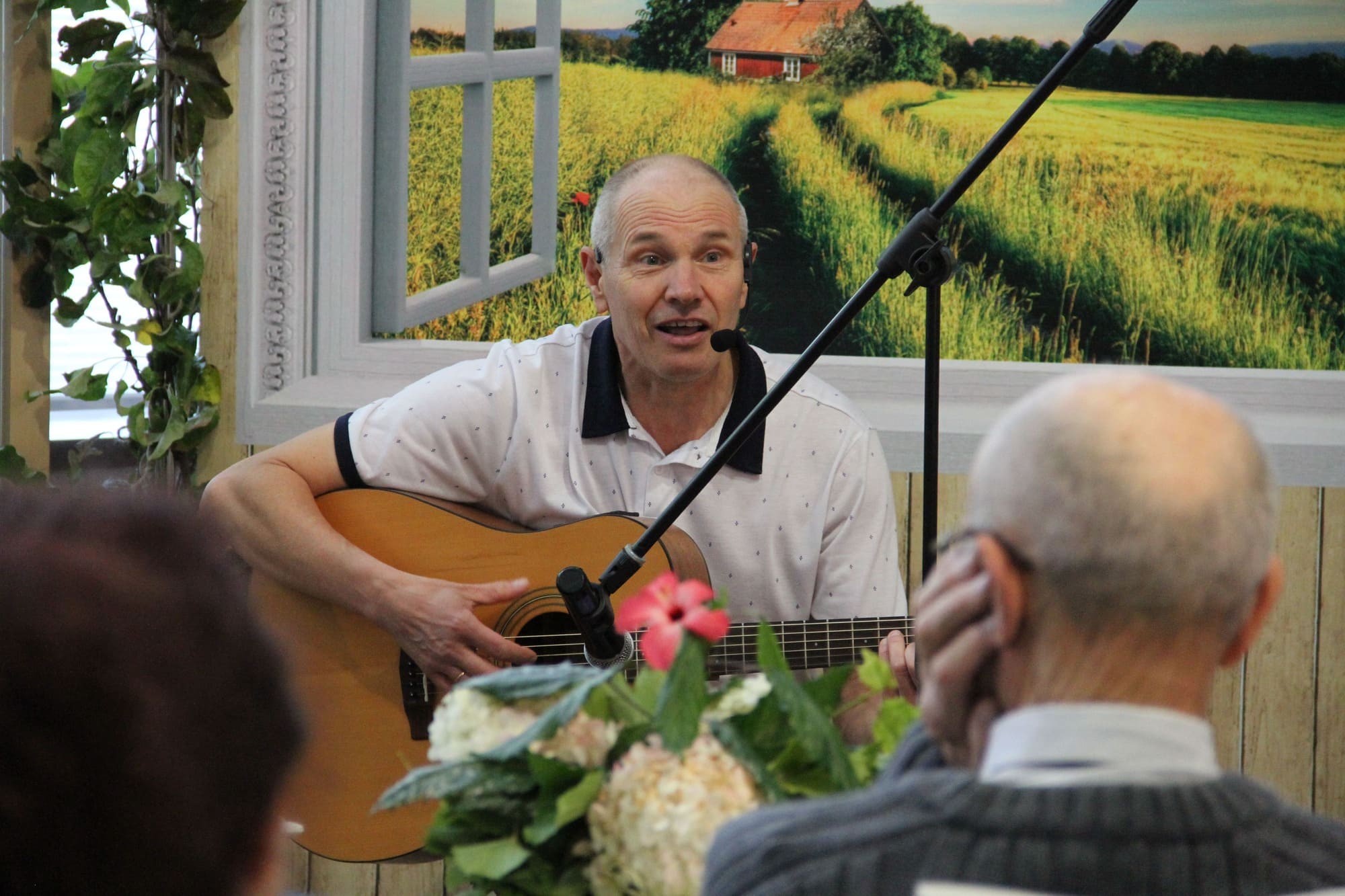 Мероприятие подарило зрителям незабываемые часы. Зал украшали осенние мотивы – золотые листья, букеты белых гортензий, уютные пледы и мягкий свет, создавая идеальный фон для проникновенных строк.
