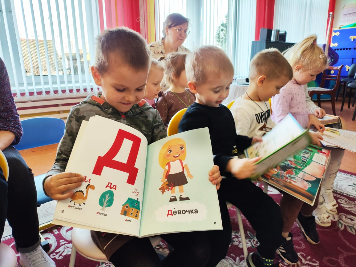 Дзеці даведаліся аб жыцці святога, паглядзелі відэафільм, пазнаёміліся са старажытнымі кнігамі, асаблівасцямі іх аздаблення, а таксама разам упрыгожылі павялічаную буквіцу “Д” ̶ “дабро”, “дзіцячы сад”, “дом”.