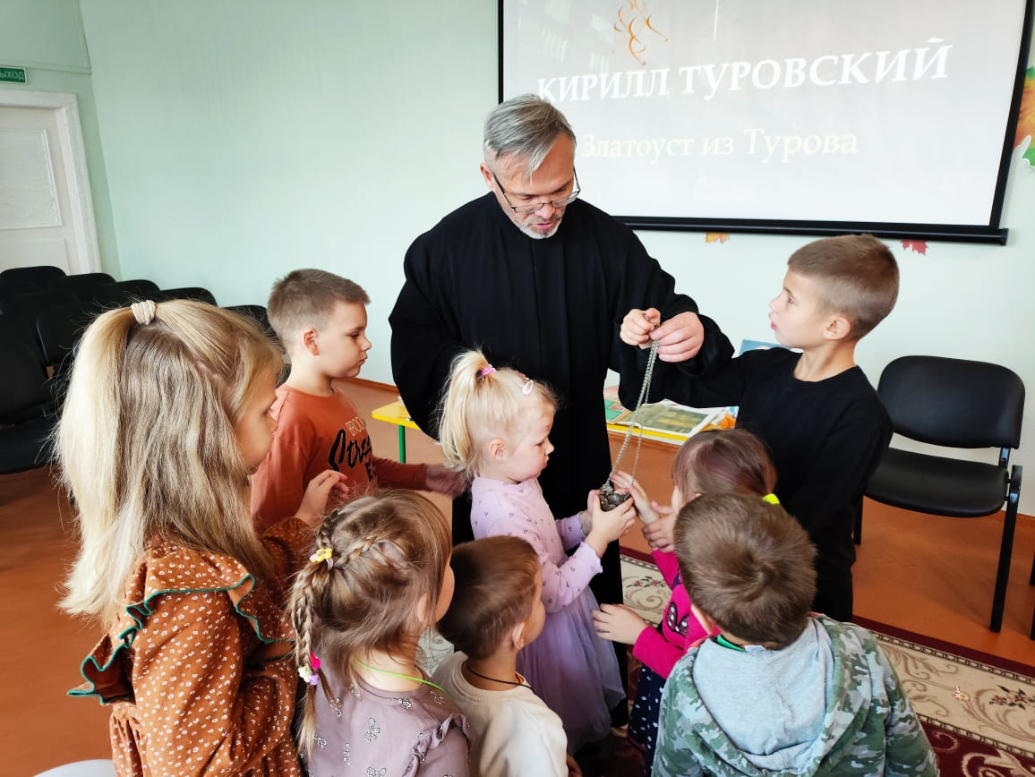 Супрацоўнікі дзіцячага аддзела разам з маленькімі выхаванцамі дзіцячага сада №35 адправіліся ў віртуальную вандроўку па старажытнаму Тураву, каб пазнаёміцца з дзейнасцю славутага земляка.