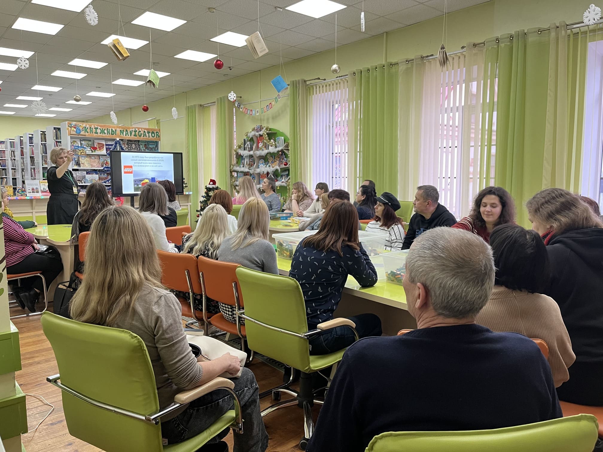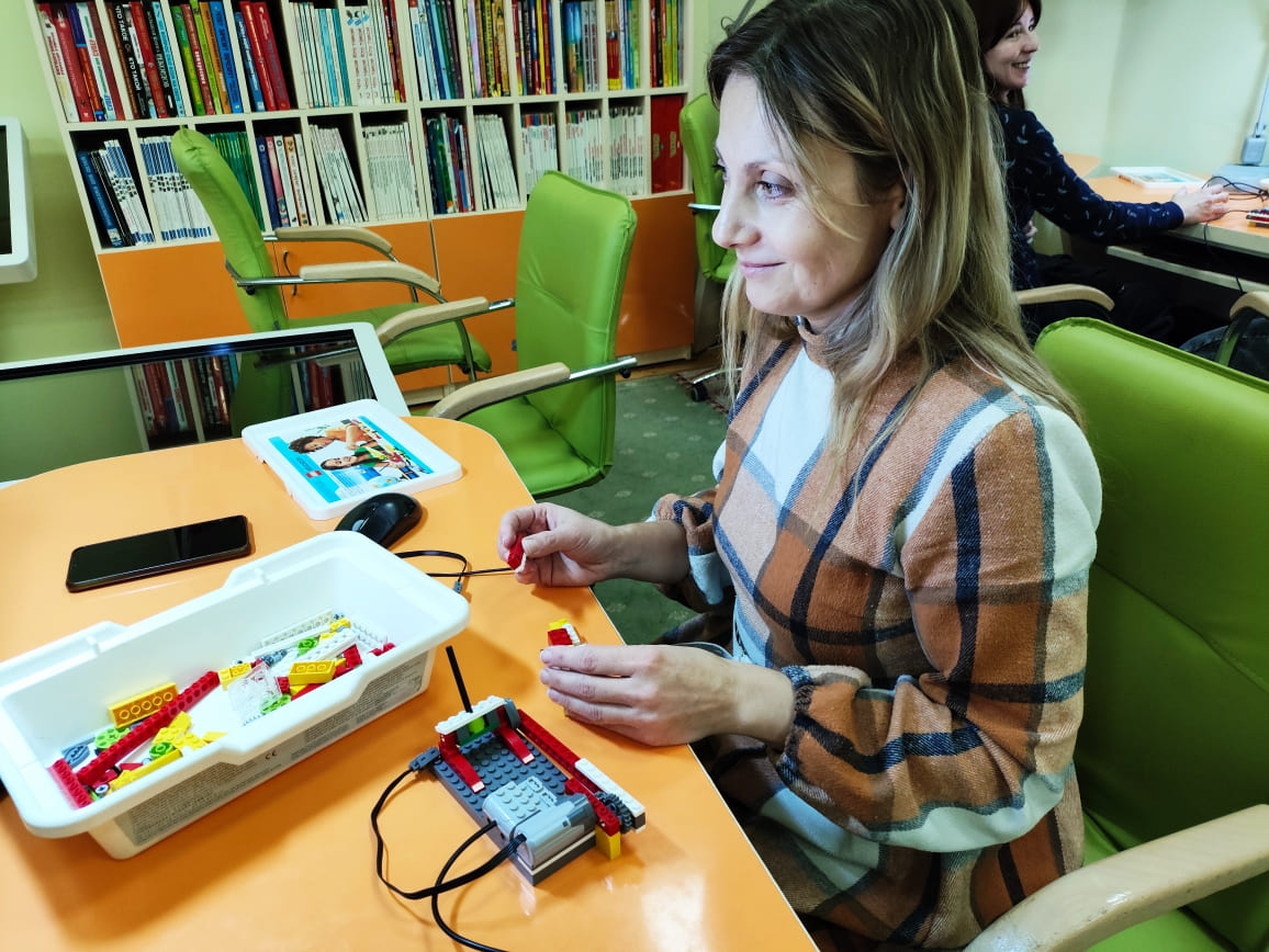 В детском отделе областной библиотеки состоялся мастер-класс «ЛЕГО-конструирование в образовательном процессе» для слушателей курсов повышения квалификации Гродненского областного института развития образования - педагогов дополнительного образования. Мероприятие собрало около 30 участников — педагогов, методистов и руководителей кружков, заинтересованных во внедрении современных образовательных технологий в деятельность.