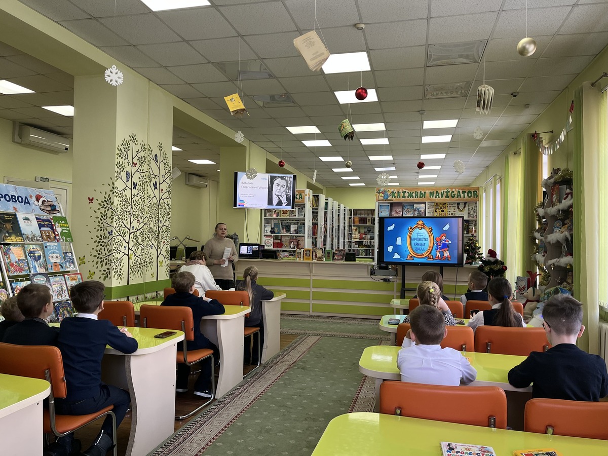 Детский отдел пригласил юных читателей гимназии № 10 имени Митрополита Филарета (Вахромеева) окунуться в волшебный мир произведения Виталия Губарева. Гостей ждала захватывающая литературная викторина по сказке «Королевство кривых зеркал», полная загадочных вопросов и интересных заданий, связанных с приключениями девочки Оли и ее отражения Яло в сказочной стране. Ребята отправились в путешествие по страницам любимой книги, проверяя свою память и смекалку. Им предстояло разгадать тайны королевства, вспомнить имена персонажей, описать события и раскрыть секреты зеркального мира. Участники разделились на команды, каждая из которых получила карту путешествия и задания разной степени сложности.