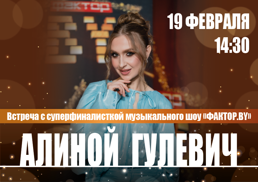 Спешим поделиться с вами по-настоящему яркой новостью! Совсем скоро в стенах областной библиотеки состоится особенное событие – встреча с талантливой и харизматичной Алиной Гулевич, суперфиналисткой популярного музыкального шоу «ФАКТОР.BY»!