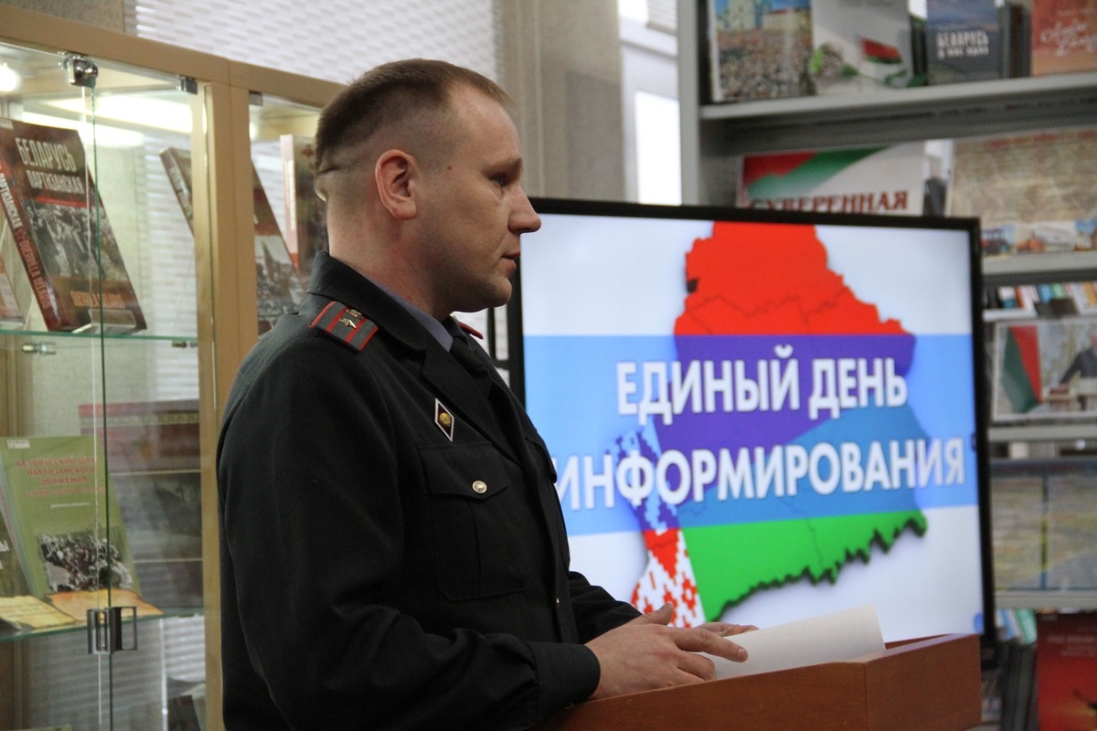 В Гродненской областной библиотеке состоялся Единый день информирования с участием представителей информационно-пропагандистской группы администрации Ленинского района г. Гродно. Основная тема встречи: «Оборонительная мощь белорусской армии и патриотизм в современных условиях».