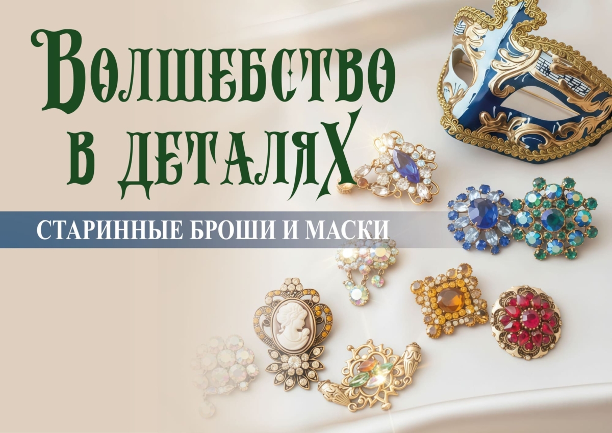 26 февраля в 15.00 в отделе искусства откроется выставка старинных украшений «Волшебство в деталях: старинные броши и маски» в рамках проекта «Прикоснуться к истории».