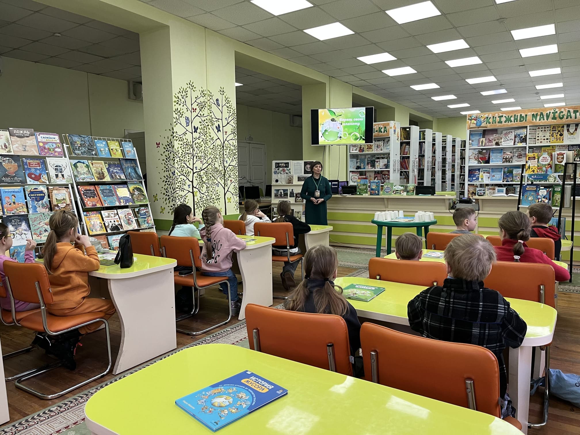 В детском отделе областной библиотеки школьники из 1-ой гимназии им. академика Е.Ф. Карского стали участниками экологического урока «Сортируй отходы! Сохрани природу!» по книге Елены Запасник «Забота о Матушке Природе».