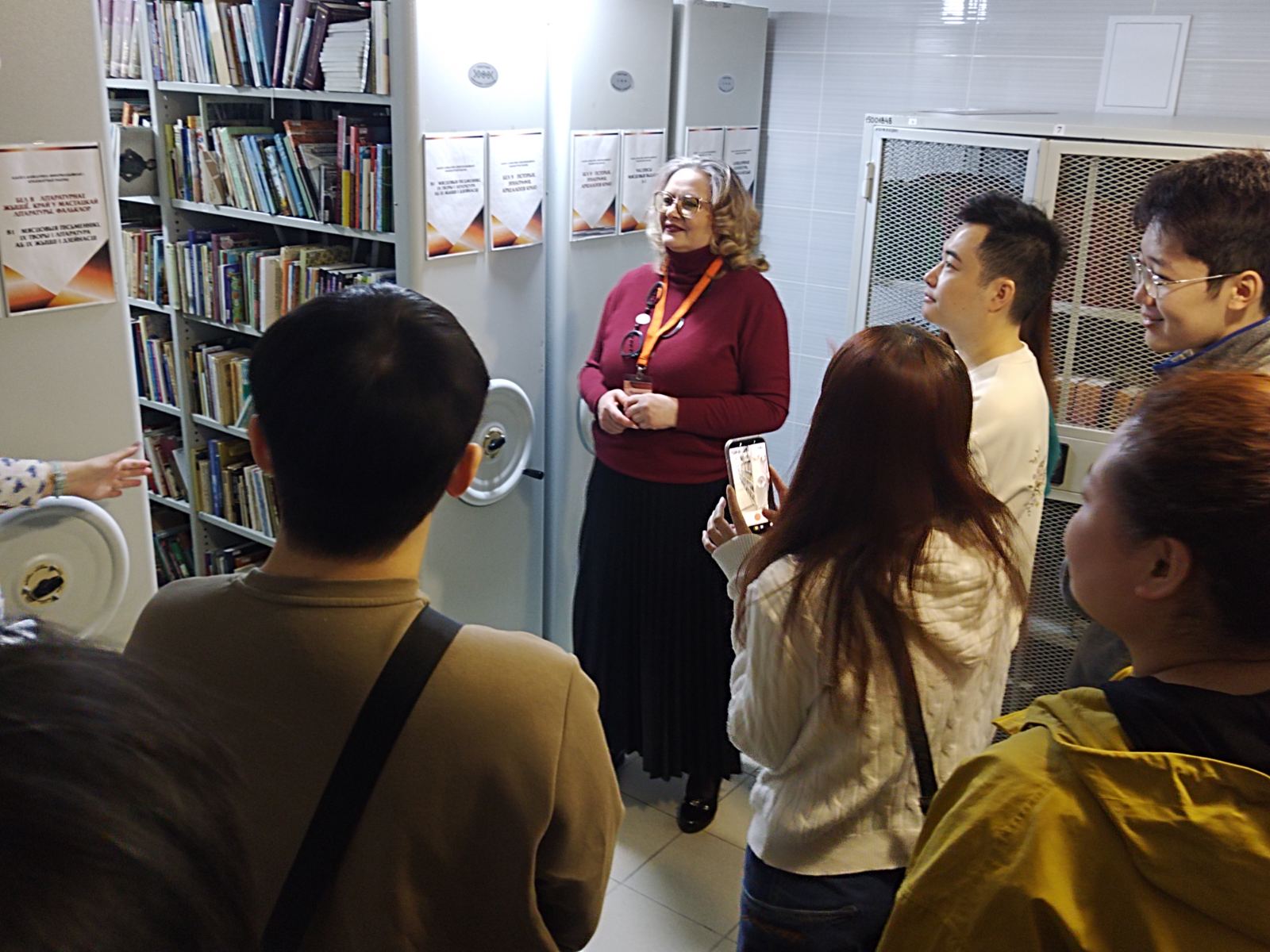 Будущие журналисты познакомились с возможностями Гродненской областной научной библиотеки имени Е.Ф. Карского, её богатым фондом, а также с историей здания, где сегодня хранятся тысячи книг, журналов и газет. Студенты прошлись по залам и книгохранилищу библиотеки, увидели 90-летние сейфовые двери в зале редкой книги, за которыми бережно хранятся древнейшие издания.