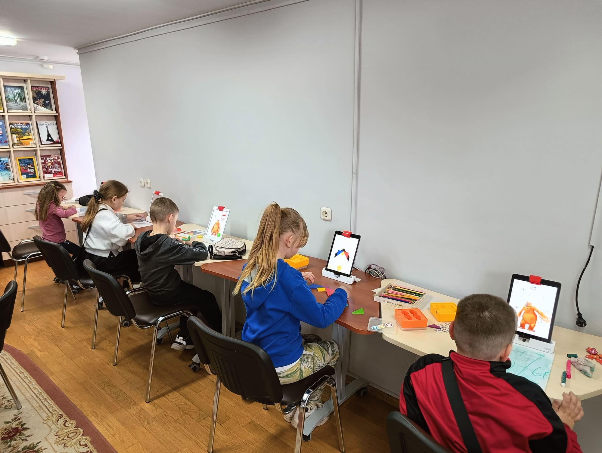 Отдел изданий на иностранных языках на время каникул превратился в настоящий «парк высоких технологий». В распоряжении юных исследователей оказались электронные конструкторы «Знаток», игровые приложения ОСМО на планшетах iPad и магия дополненной реальности. Технологии 3D позволили ребятам рисовать, конструировать и изучать иностранные языки в формате захватывающего приключения. Но самым долгожданным моментом для всех стало погружение в виртуальную реальность: с помощью VR-шлемов ребята из пришкольных лагерей совершили невероятные путешествия, не покидая стен библиотеки.