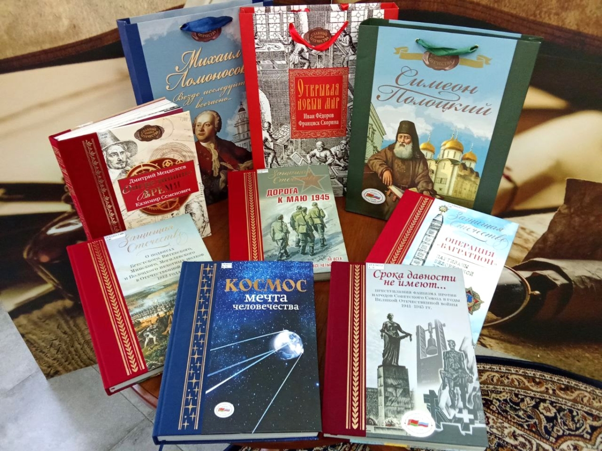 В фонд областной библиотеки поступили следующие издания: «Открывая новый мир», «Защищая Отечество», «Симеон Полоцкий», «Михаил Ломоносов», «Дорога к МАЮ 1945», «Космос», «Опередившие время», «Операция «Багратион» и «Срока давности не имеют…».