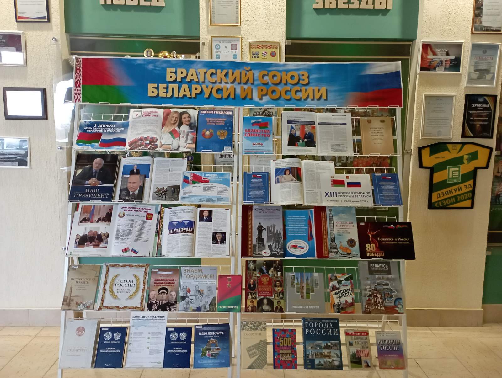 В эту знаменательную дату сектором библиографического описания документов отдела справочно-информационной и краеведческой работы областной библиотеки был представлен выставочный проект «Братский союз Беларуси и России», подготовленный для сотрудников ОАО «Гродножилстрой» и филиала «Гродненская теплоэлектроцентраль – 2» РУП «Гродноэнерго». Данная экспозиция подчёркивает, что традиционные связи нужно не только сохранять, но и укреплять!