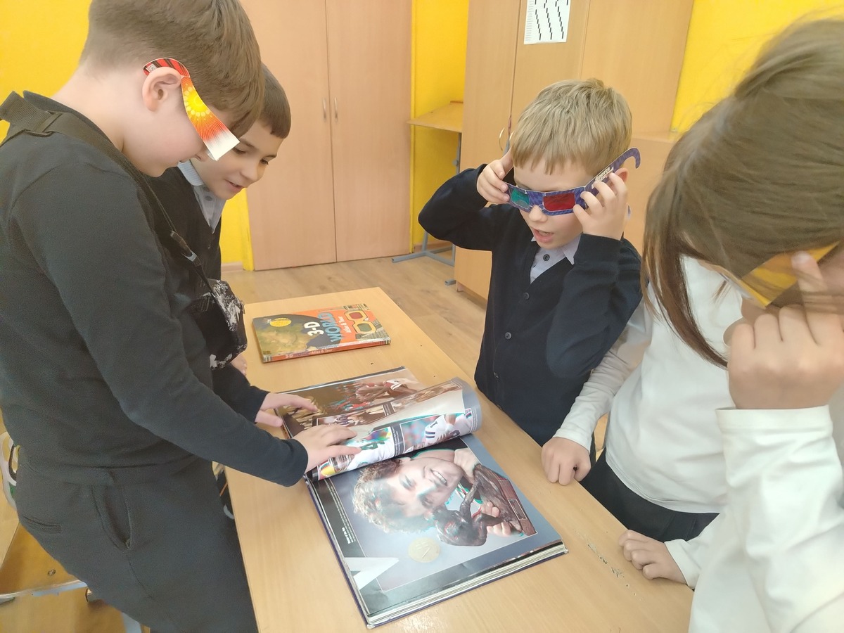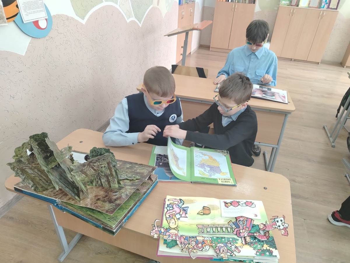 Особое внимание привлекли книги формата поп-ап с их сложными объёмными конструкциями. Стоит открыть страницу, и из неё вырастают объёмные замки, динозавры и сказочные герои, словно готовые выпрыгнуть в реальность. С помощью специальных линз школьники смогли погрузиться в мир 3D-иллюстраций, а мягкие тактильные книги хотелось обнимать, словно плюшевые игрушки.