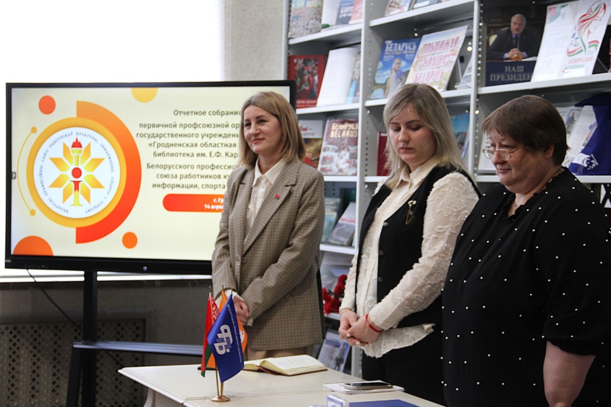 На профсоюзном отчётном собрании 14 апреля 2026 года были подведены итоги работы первичной профсоюзной организации ГУК «Гродненская областная научная библиотека имени Е.Ф. Карского» за 2025 год.