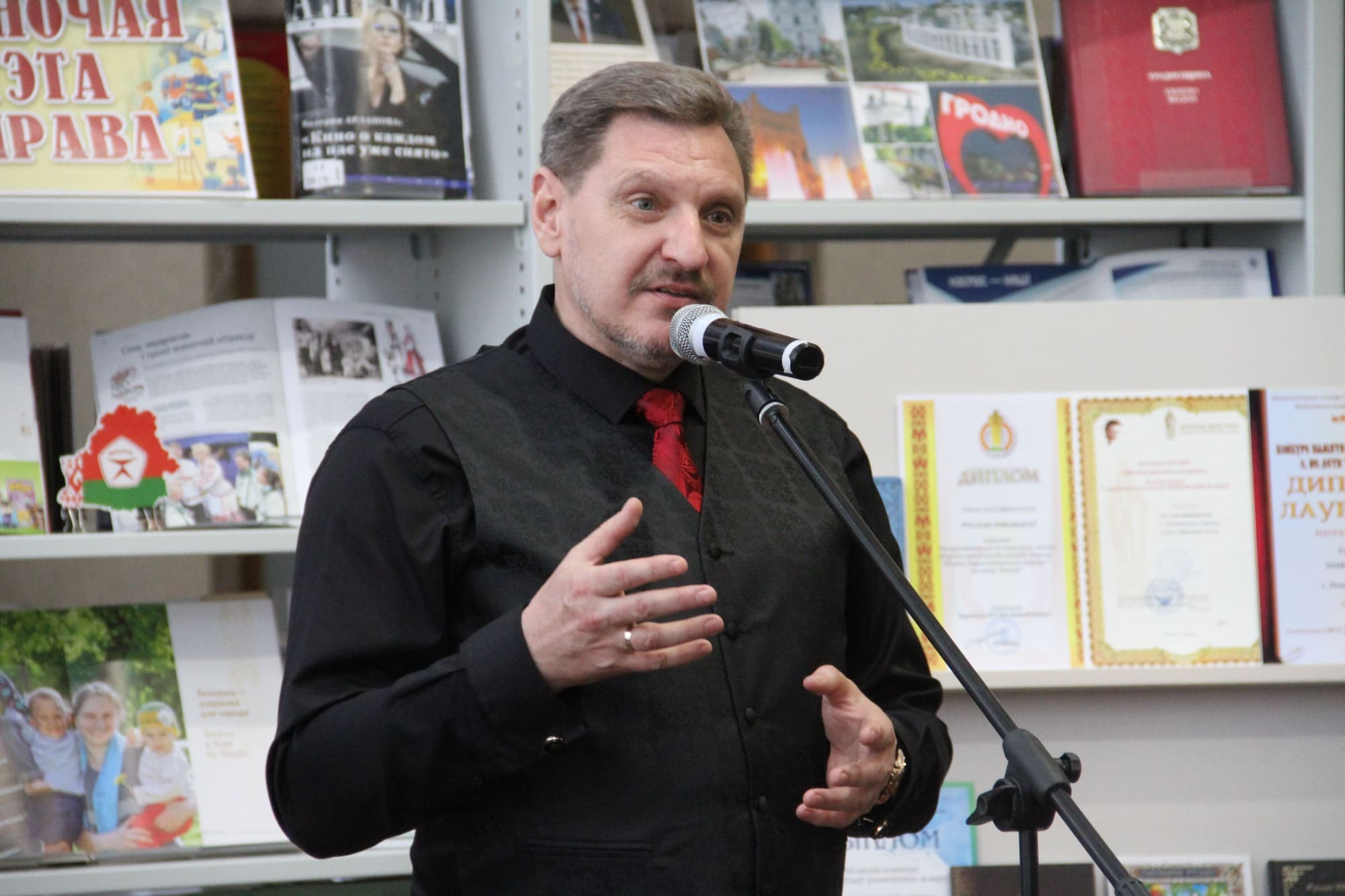 И вновь Гродненская областная библиотека имени Е. Карского стала местом, где встретились ценители изящной поэзии и прекрасной музыки! В этот раз двери распахнулись для встречи с Русланом Пивоваровым – членом Союза писателей Беларуси, лауреатом многих международных престижных премий, автором 7 книг и более 30 публикаций.