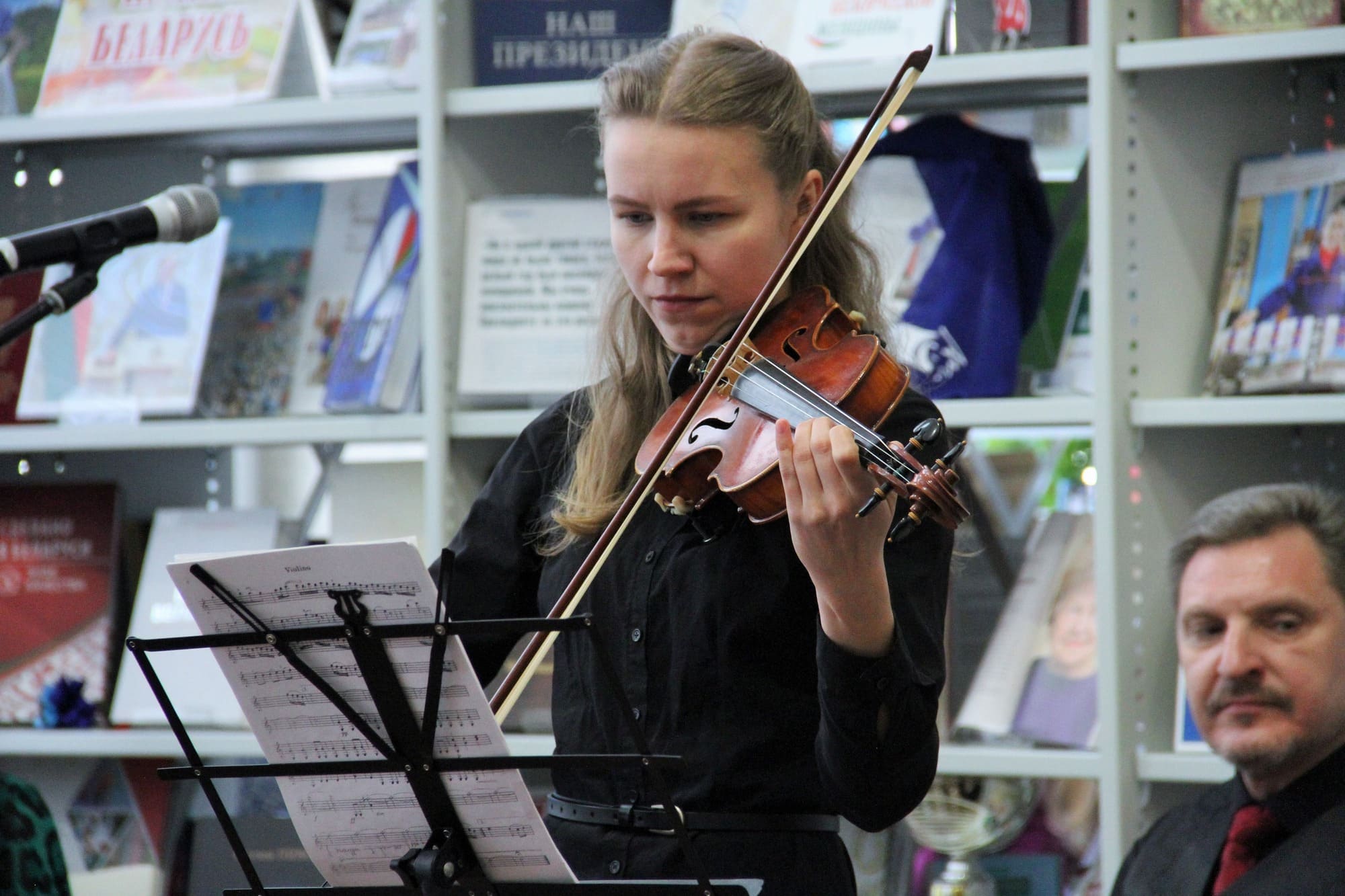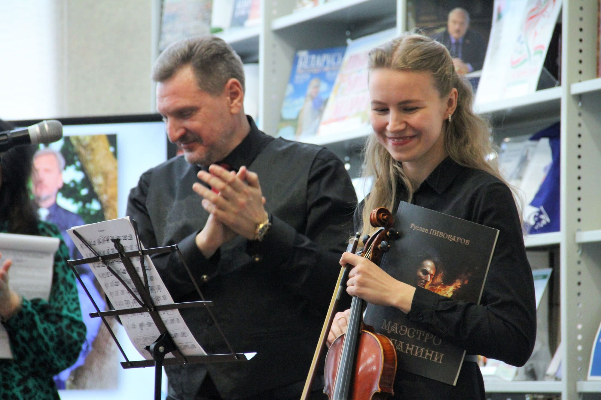 Атмосфера встречи была наполнена прекрасными стихами в исполнении Руслана Пивоварова. Музыкальное произведение Паганини «Кантабиле» прозвучало в исполнении Яны Яблонской (скрипка) и Анастасии Рудой (фортепиано) из Гродненского государственного музыкального колледжа. Это безусловно явилось украшением поэтической встречи. Праздник поэзии и музыки, в котором слова сплетались в ноты и дарили слушателям ощущение бесконечного полета творчества.
