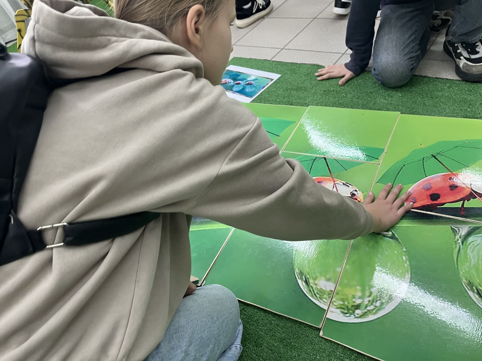 Но это еще не все! Ребята смогли не только полюбоваться экспонатами, но и активно поучаствовать в жизни выставки: собрать огромные пазлы, которые по размеру сравнимы с двухметровой картиной – настоящее испытание для внимательности и ловкости. Выполнить интерактивные задания, которые заставили их думать и творить, пройти увлекательный образовательный квест, где каждый шаг открывал новые тайны жизни природы.