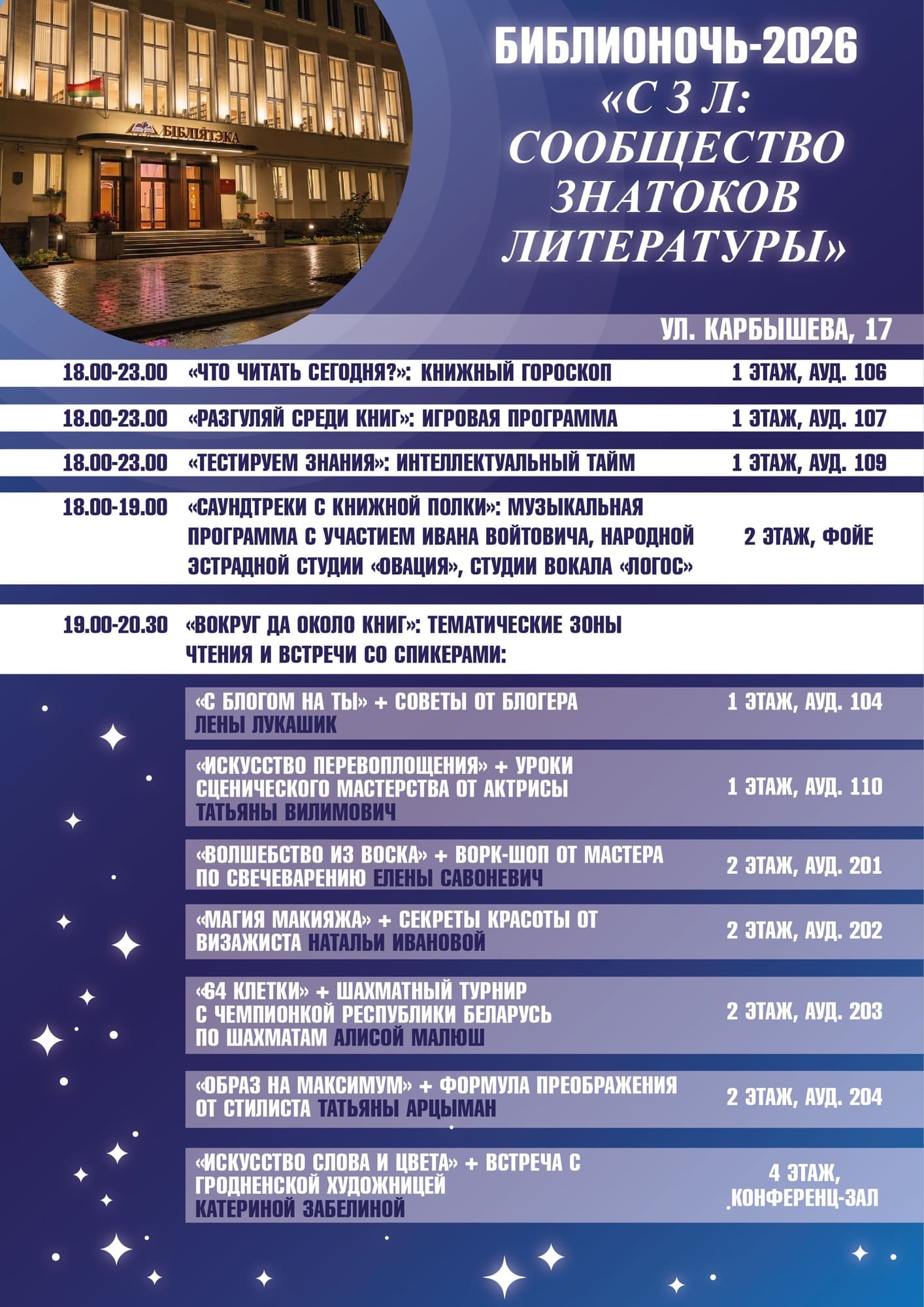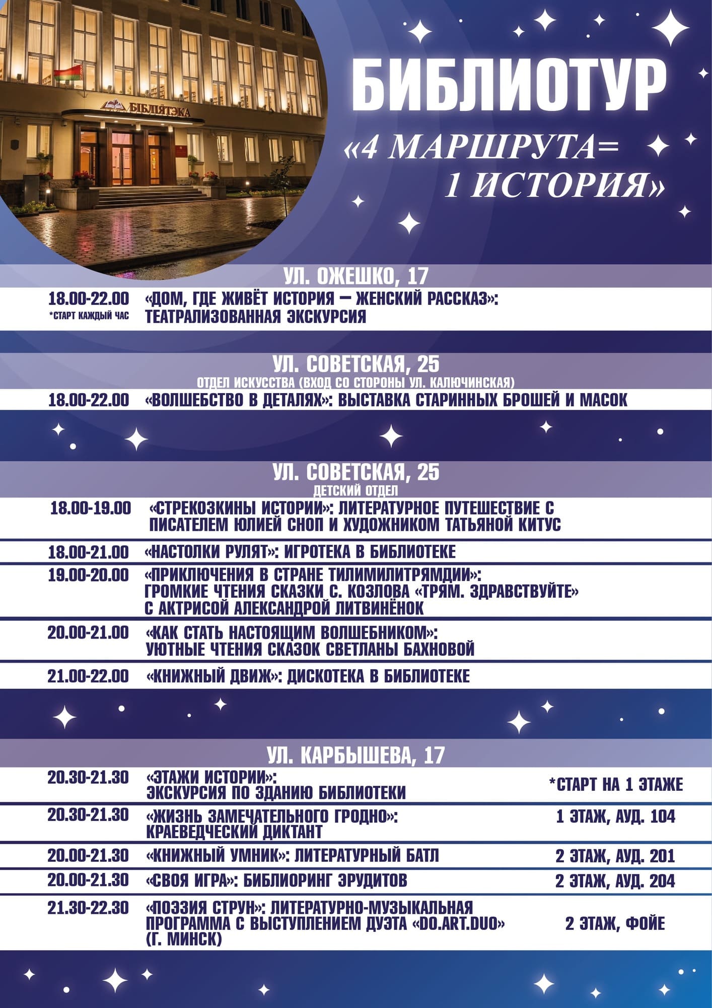 17 апреля в 10.00 для учащихся ГУО «Средняя школа № 2 имени В.Ю. Саяпина г. Гродно», ул. Советская, 8 (сектор хранения основного фонда)