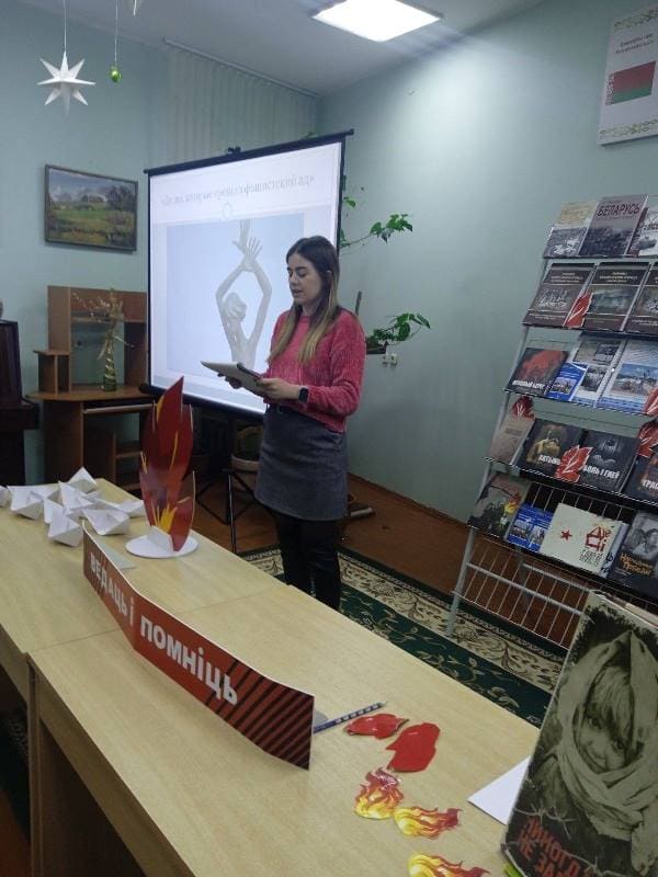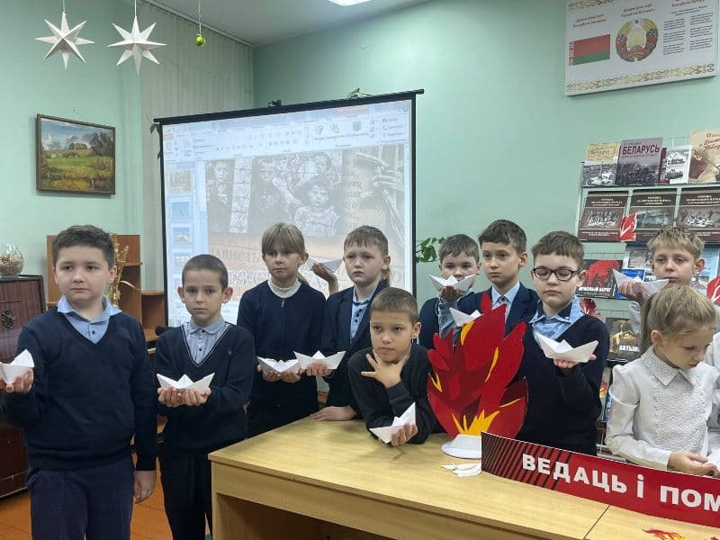 Мероприятие было посвящено геноциду белорусского народа, а главной темой стала страшная судьба малолетних узников сборного лагеря детей в деревне Красный Берег Жлобинского района. Ребята узнали о тех испытаниях, которые выпали на долю белорусского народа в годы войны, и особенно – о тяжёлых лишениях, выпавших на долю младшего поколения, чьё детство было оборвано войной.