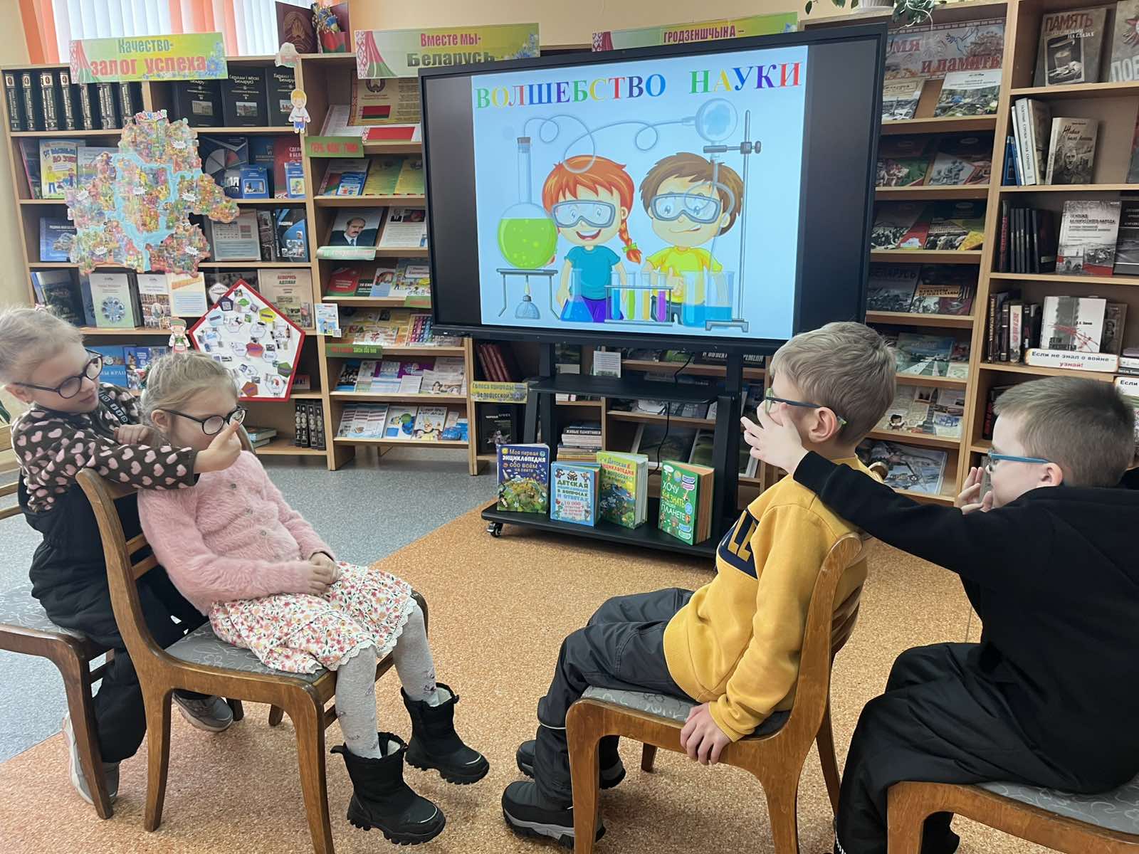 В филиале «Лидская городская детская библиотека» воспитанники ГУО «Специальный детский сад №16 г.Лиды» попали на литературную лабораторию «Волшебство науки», приуроченную ко Дню белорусской науки. Ребятам рассказали, что такое наука, для чего проводят опыты и исследования, кто такой учёный и чем он занимается и что такое лаборатория. Дошколята с удовольствием приняли участие в простых научных экспериментах «Вода и воздух», «Способности человеческого мозга» и др., что вызвало много восторга и интереса. Также детей познакомили с серией книг «Маленький профессор» издательства «Беларуская Энцыклапедыя імя П. Броўкі», в которых рассказывается о науках и профессиях людей, которые работают в этой области.