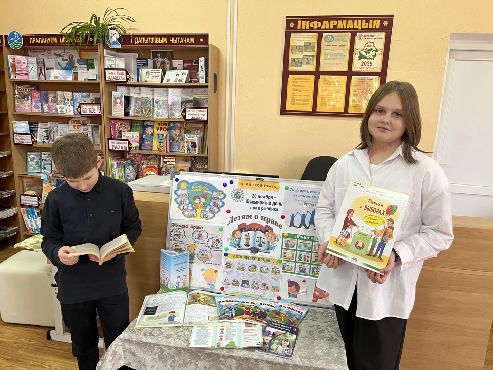 Правовая игра «С правами мы идём по сказке» была проведена в Войтковичской сельской библиотеке; информина «Права свои знай, обязанности не забывай» прошла в Подоросской сельской библиотеке; час правовой культуры «Вы в праве знать о праве» – в Изабелинской сельской библиотеке; «Азбука прав ребёнка» – в Гнезновской сельской библиотеке; в библиотеке аг. Юбилейный для учащихся начальных классов была организована правовая игра «Мир моих прав».