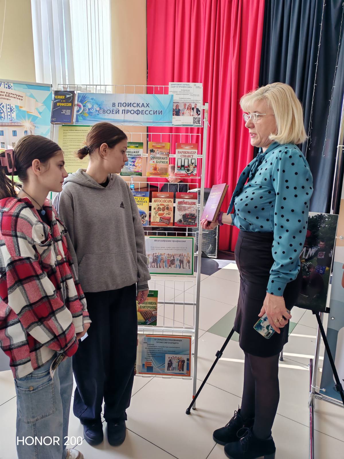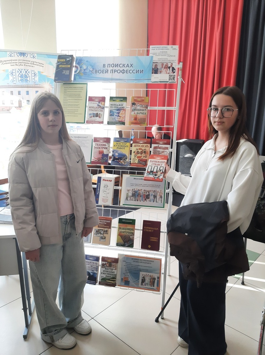 К участию в ярмарке присоединилась Слонимская районная библиотека им. Я. Коласа. Для учащихся городских школ библиотекари подготовили день информации «В поисках призвания». В центре внимания были актуальные тенденции на рынке труда и критерии выбора будущей специальности. Посетители смогли познакомиться с востребованными профессиями и изучить литературу, представленную на тематической книжной выставке «В поисках своей профессии».