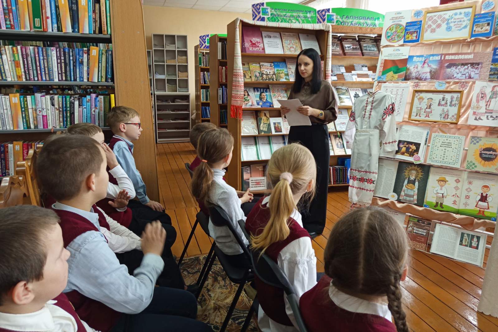 Дзеці з захапленнем слухалі пра тое, як стваралася адзенне, якія матэрыялы выкарыстоўваліся і як шмат працы і любові ўкладвалася ў кожную кашулю ці фартух.