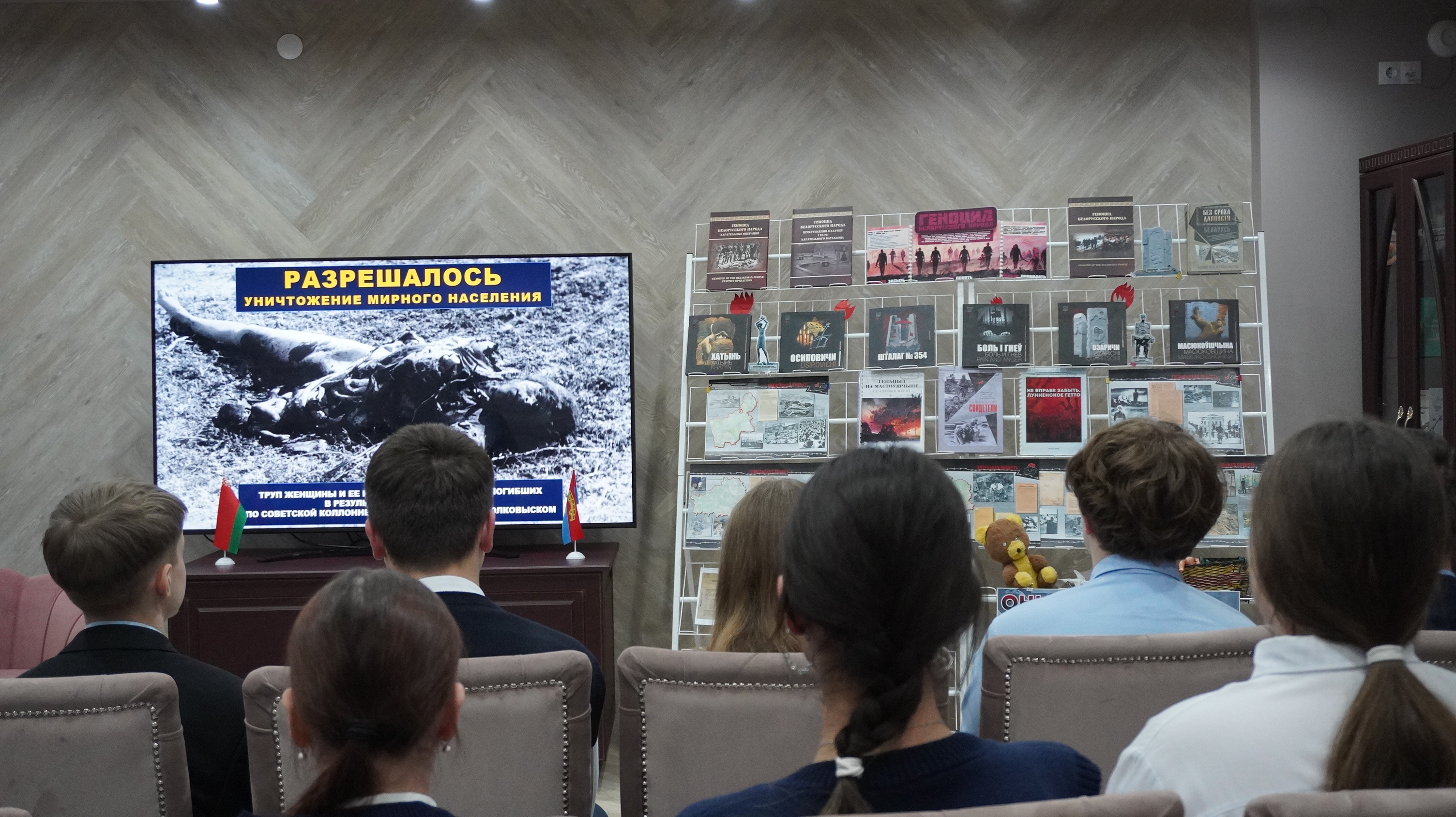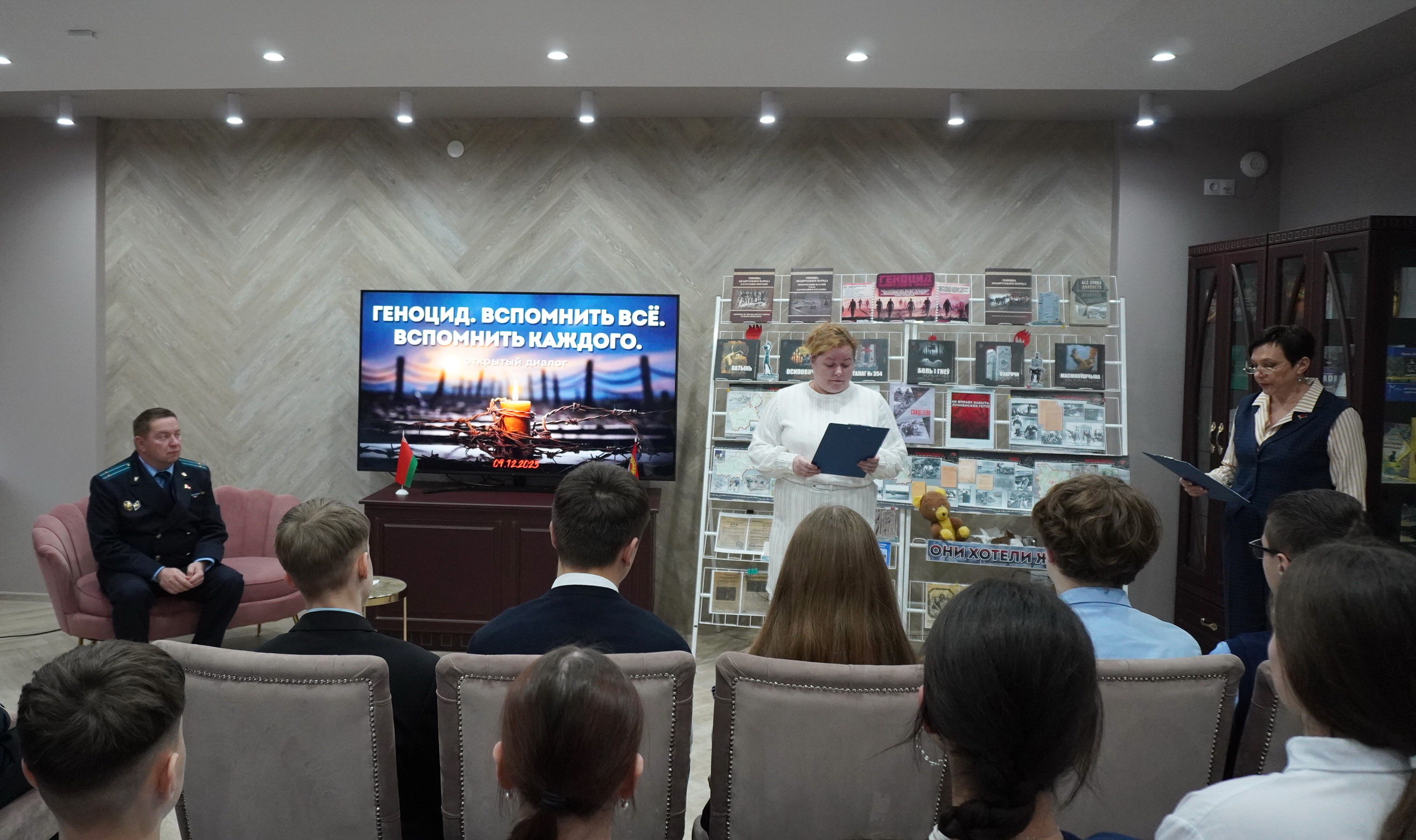 В этот особенный день в Мостовской районной библиотеке состоялся открытый диалог со старшеклассниками на тему «Геноцид. Вспомнить всё. Вспомнить каждого». Ведущие напомнили ребятам о событиях Великой Отечественной войны, что такое геноцид, рассказали о фактах массового уничтожения мирного населения фашистами, о том, как ни в чем неповинные люди стали жертвами преступлений нацистов в годы Великой Отечественной войны.