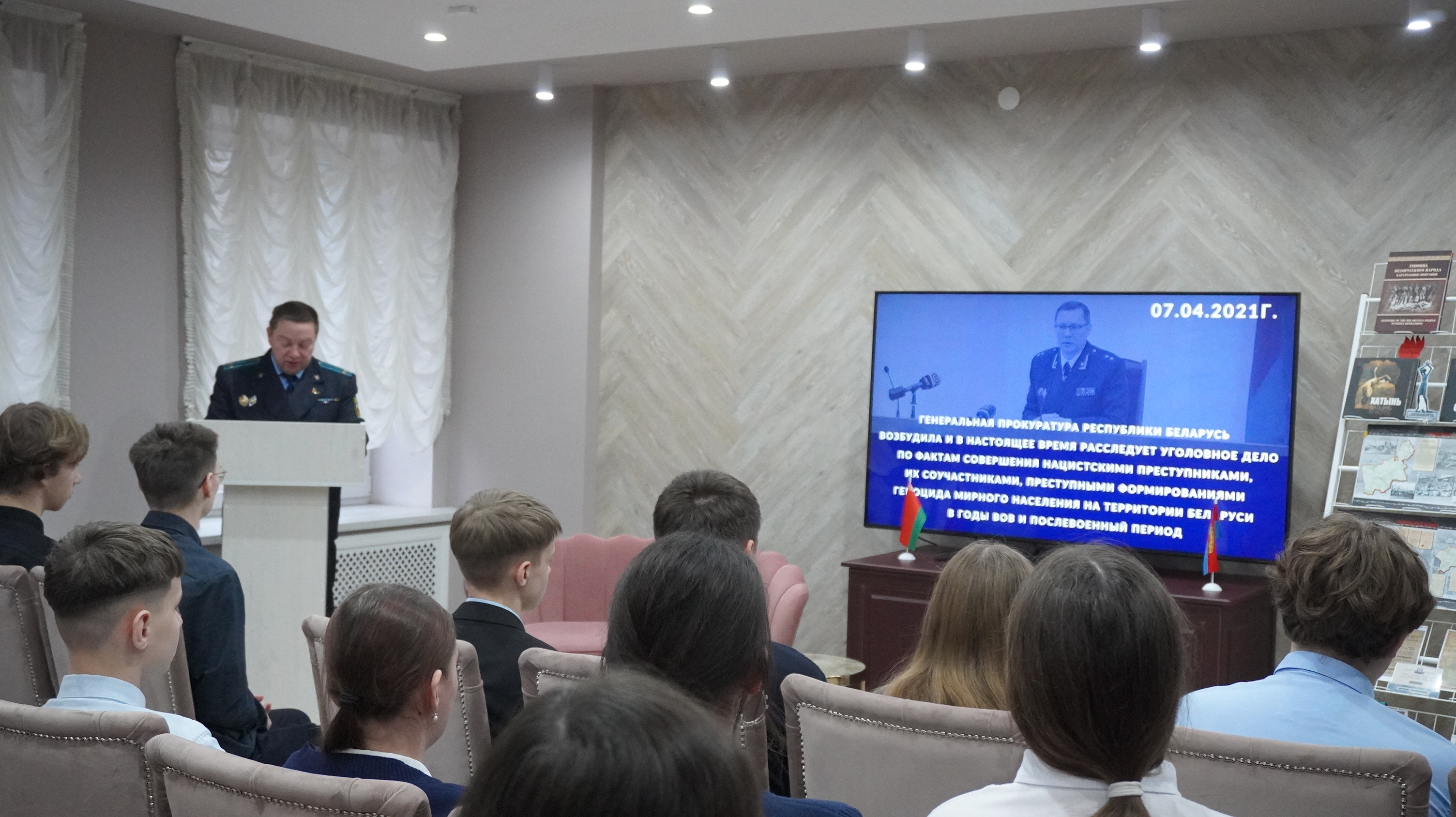 К теме геноцида белорусского народа обратился и заместитель прокурора Мостовского района Сергей Иосифович Чарковский. Заместителем прокурора отмечено, что расследование уголовного дела о геноциде белорусского народа ведётся Генеральной прокуратурой Беларуси уже четыре года, в ходе расследования вскрылись многочисленные ранее неизвестные факты убийства мирных граждан, обнаружены новые места захоронения людей. Работа по фиксированию информации от очевидцев тех событий и их родственников, увековечиванию памяти о погибших мирных жителях и защитниках Отечества по-прежнему продолжается. Работа прокуратуры по расследованию уголовного дела о геноциде направлена на сохранение исторической справедливости.