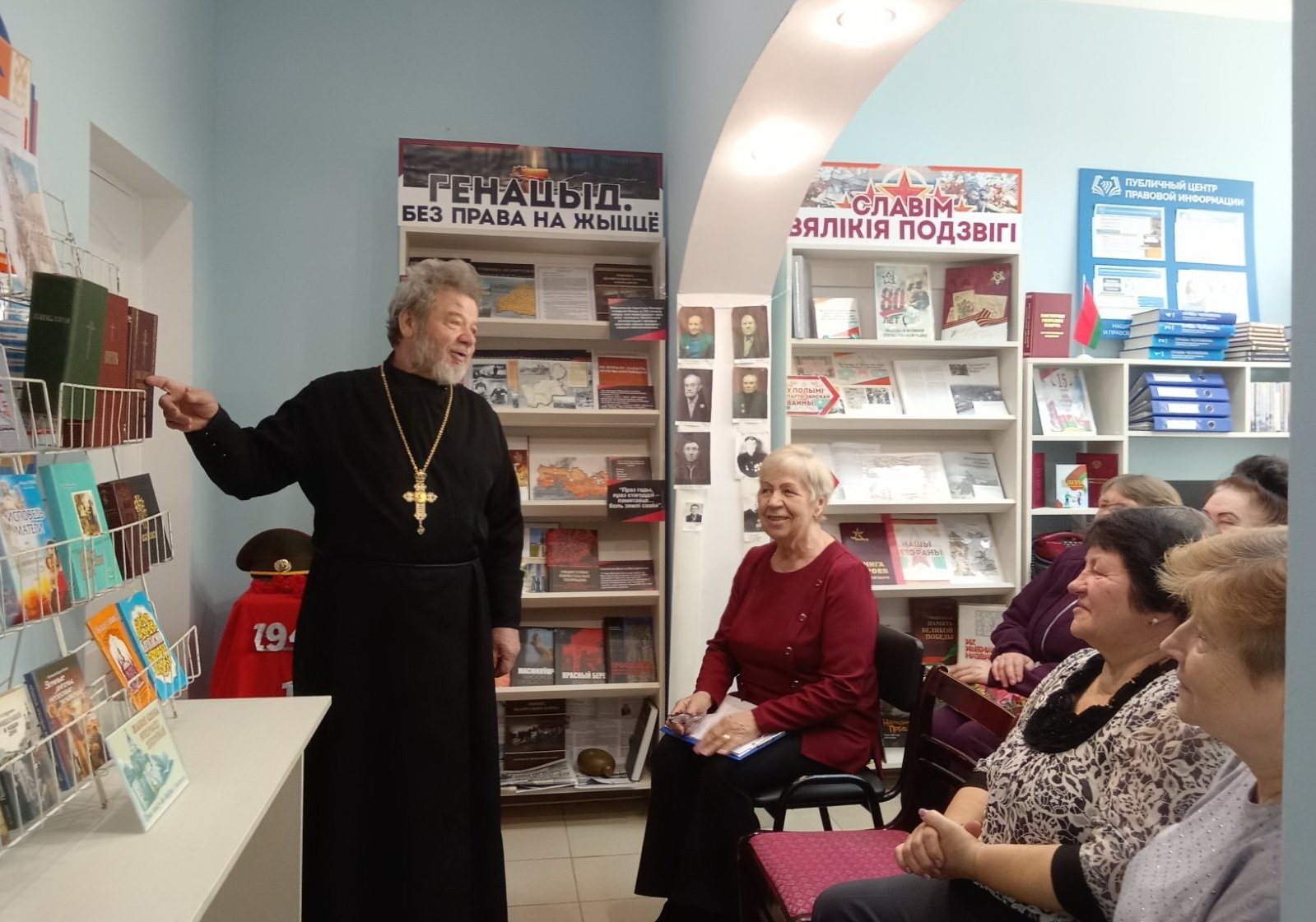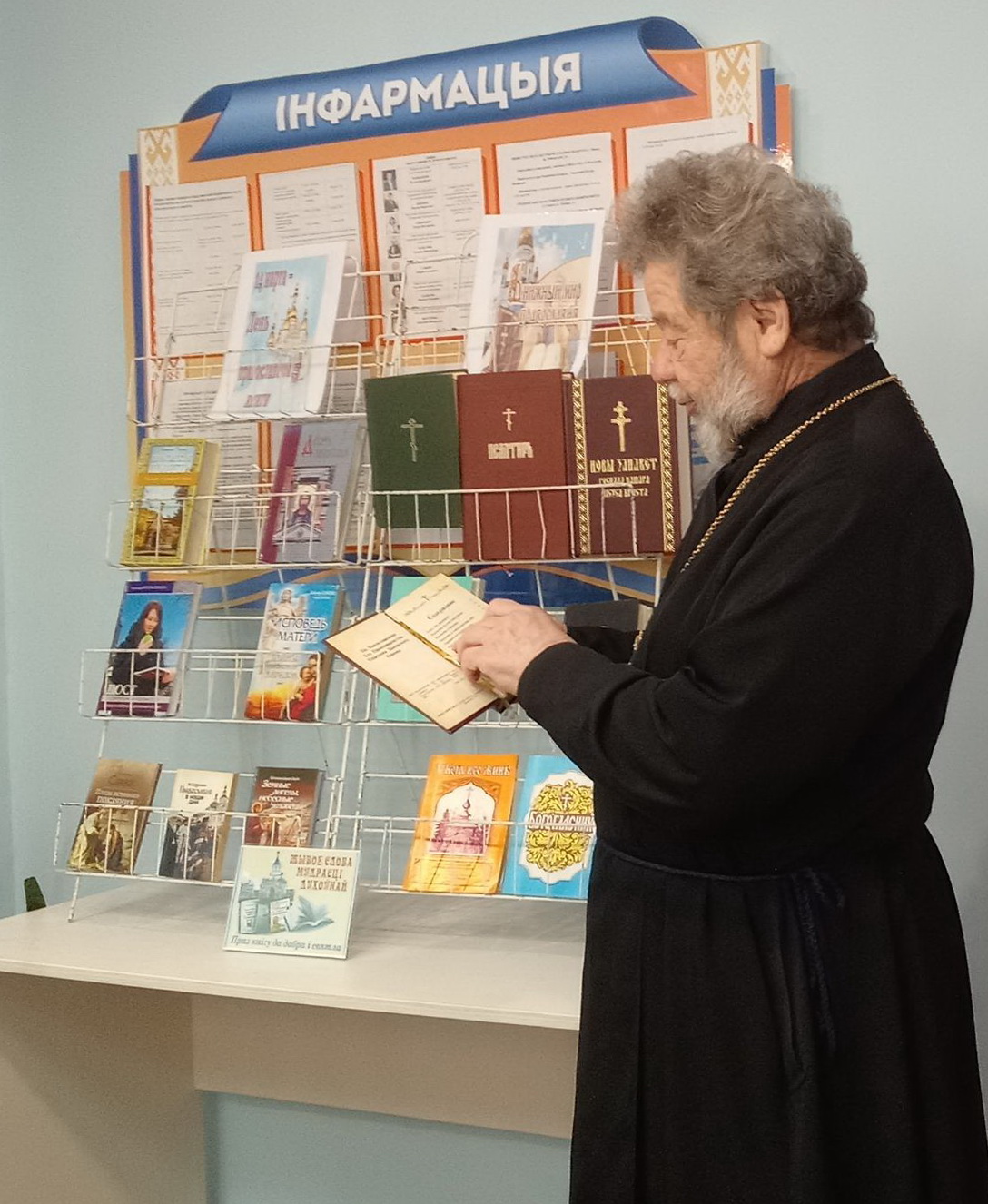 Отец Николай познакомил со старейшими изданиями церковного фонда, рассказал о первых рукописных книгах, о значении православной литературы в жизни верующего человека, познакомил с Евангелием, изданном в 19 веке. В духовной беседе священнослужитель рассуждал вместе с присутствующими на тему души человеческой, делился мыслями о таких понятиях как воля, совесть, чувства, ответил на все вопросы читателей.