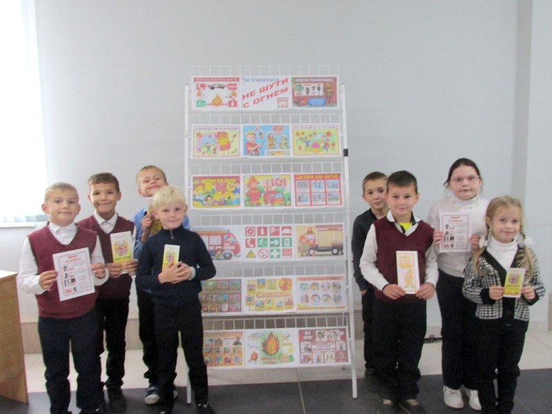 Библиотекарь побеседовала с учащимся младших классов о необходимости соблюдения правил безопасного поведения, о том, как действовать в случае чрезвычайной ситуации, познакомила с информационными материалами по пожарной безопасности, представленными на выставке.