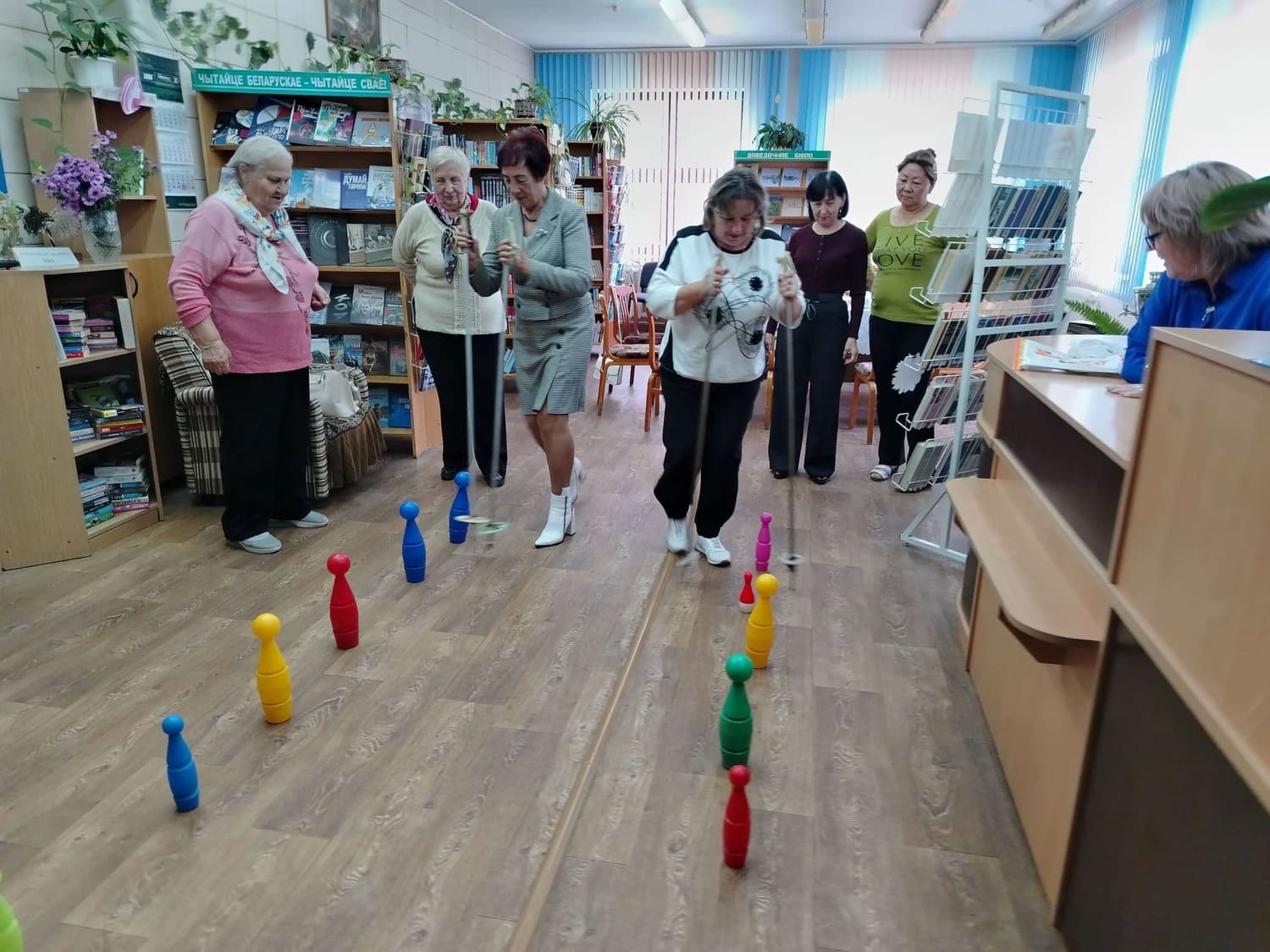 Мероприятие прошло за красивым праздничным столом. Библиотекари подготовили для гостей интересную программу. Пенсионеры активно участвовали в разнообразных конкурсах и играх: «Коллективная праздничная телеграмма», «Угадай ретро-мелодию», шуточная игра «Зачем Вы пришли на праздник?», «Сенсация в заголовке, или Угадай сказку». Понравился присутствующим конкурс «Осенний поэтический букет», составленный из кленовых листьев со стихами А. Пушкина, Ф. Тютчева, С. Есенина, Д. Кедрина, В. Авдиенко. С особым азартом наши гости участвовали в подвижной игре «Скандинавская ходьба с препятствиями» и в танцевальном конкурсе «Платочки».