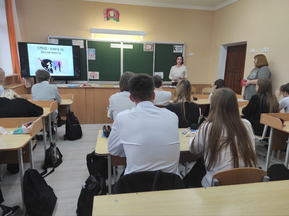Сотрудники Волковысской районной библиотеки провели для учащихся старших классов средней школы № 8 и средней школы № 2 лекторий «Молодёжь против СПИДа». Библиотекари рассказали, что из себя представляет СПИД и ВИЧ, привели статистику заболеваемости в мире и в Беларуси, развеяли мифы о болезни, рассказали о Международном символе борьбы со СПИДом – ленточке цвета крови, свёрнутой петелькой.