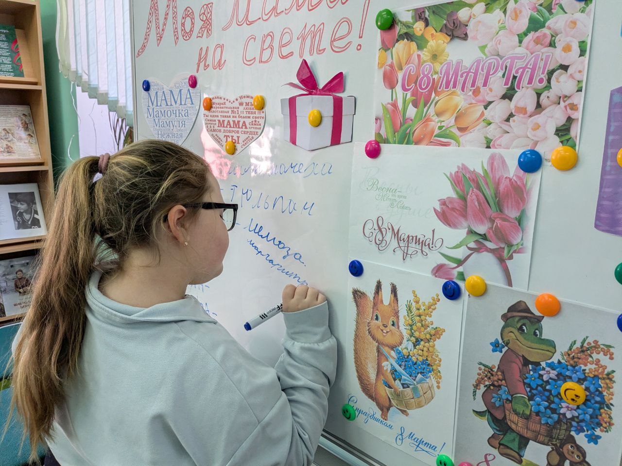 Сотрудники библиотеки подготовили для ребят насыщенную и увлекательную программу. Школьники с азартом участвовали в «цветочной» викторине, разгадывали тематические загадки, решали кроссворды, пели песни и читали трогательные стихи, посвящённые мамам.