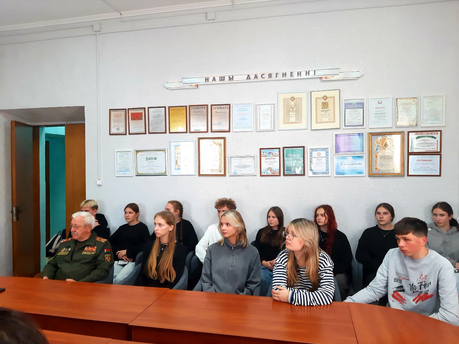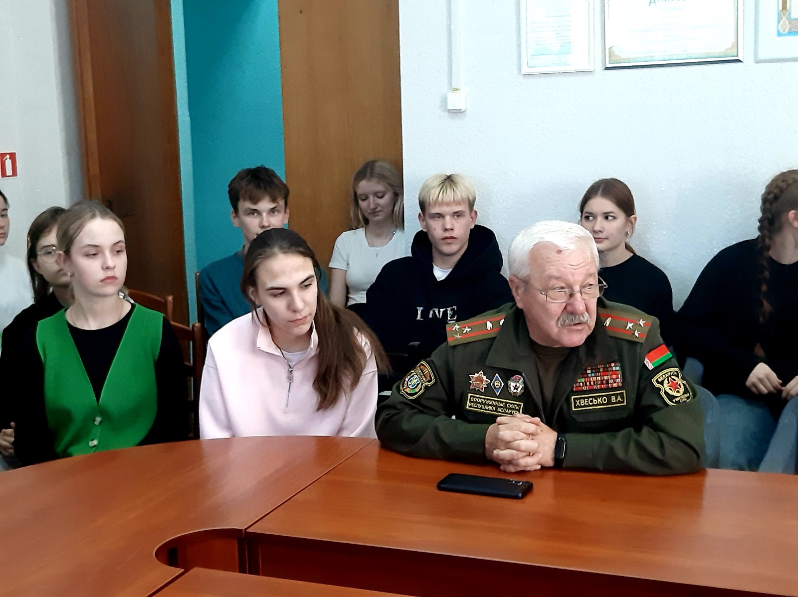 В формате открытого разговора прошла встреча учащихся УО «Слонимский государственный медицинский колледж» с Вячеславом Алексеевичем Хвесько, председателем Слонимской районной организации Белорусского общественного объединения ветеранов. Он рассказал о долгих годах военной службы, поделился жизненным опытом и ценными советами, а также принципами, которыми он руководствуется в работе, пожелал будущим медицинским работникам всегда быть верными своему долгу.