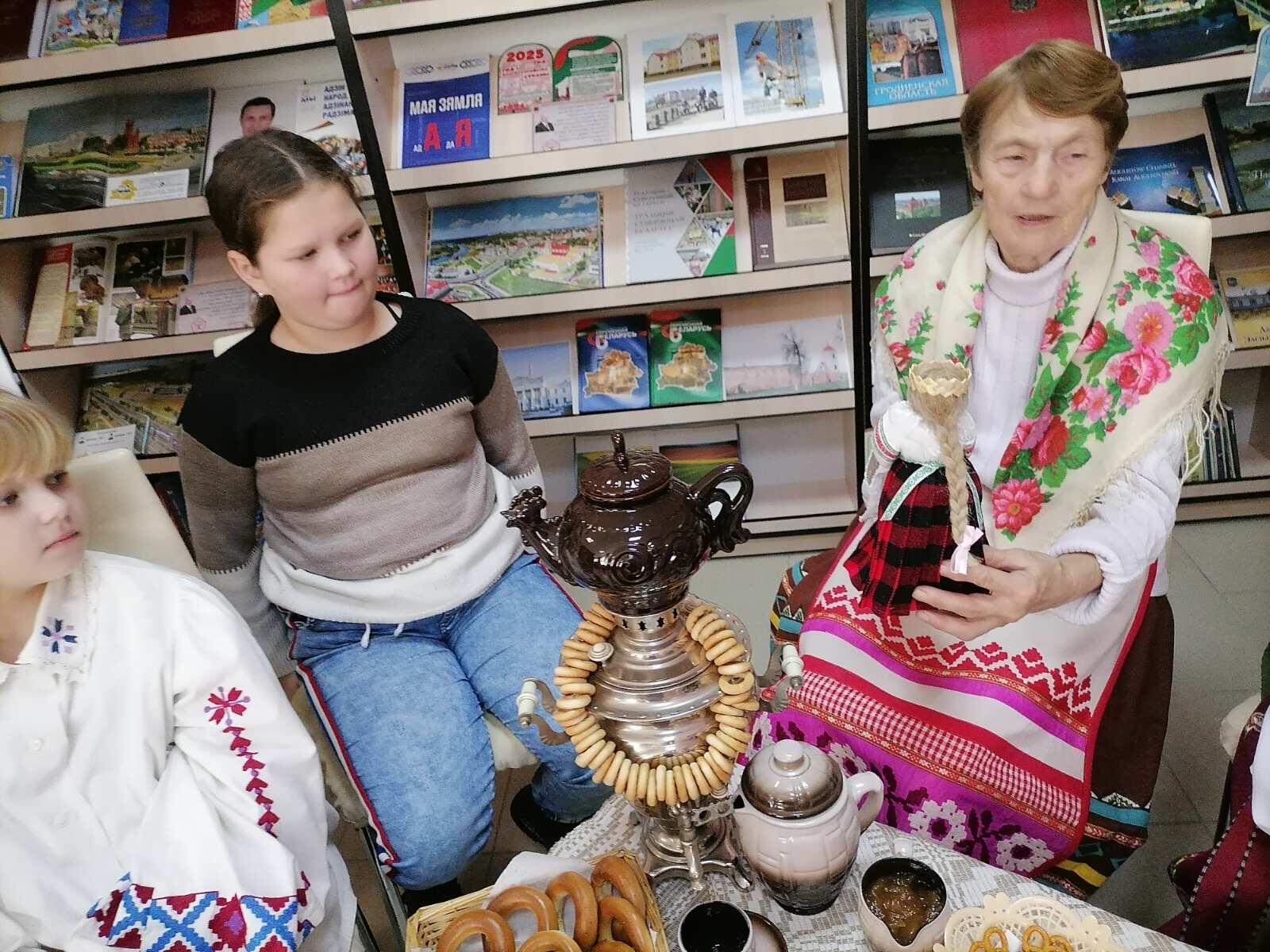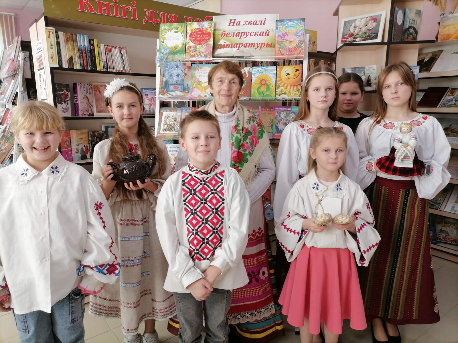 Была падрыхтавана кніжная выстава з творамі беларускіх дзіцячых пісьменнікаў. Сапраўдны інтарэс у чытачоў выклікалі вядомыя ўсім беларускія казкі. Таксама дзецям прапаноўвалася паразважаць над прыказкамі і прымаўкамі, адгадаць беларускія загадкі. А пра тое, як апраналіся нашы продкі, расказала прысутная на мерапрыемстве Марыя Осіпаўна.