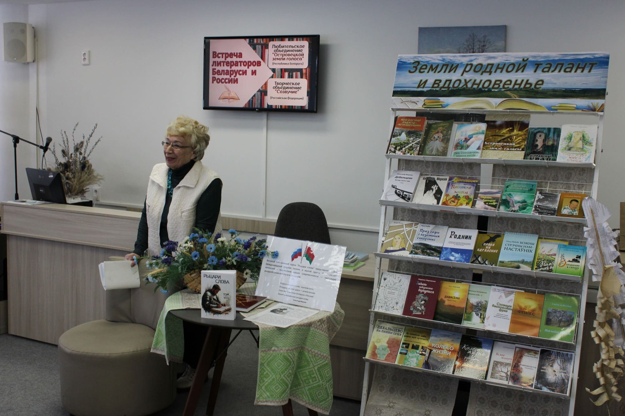 В Островецкой районной библиотеке состоялась встреча литераторов Беларуси и России. Мастера пера любительского объединения «Островецкой земли голоса» и творческого объединения «Созвучие» (Российская Федерация) были приглашены на дружескую встречу с любителями поэзии в библиотеку.