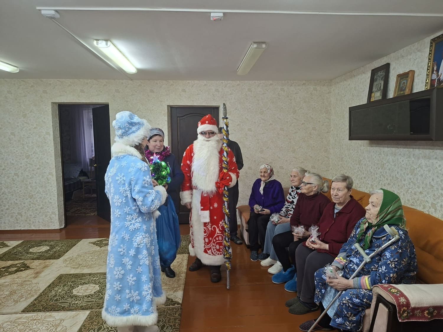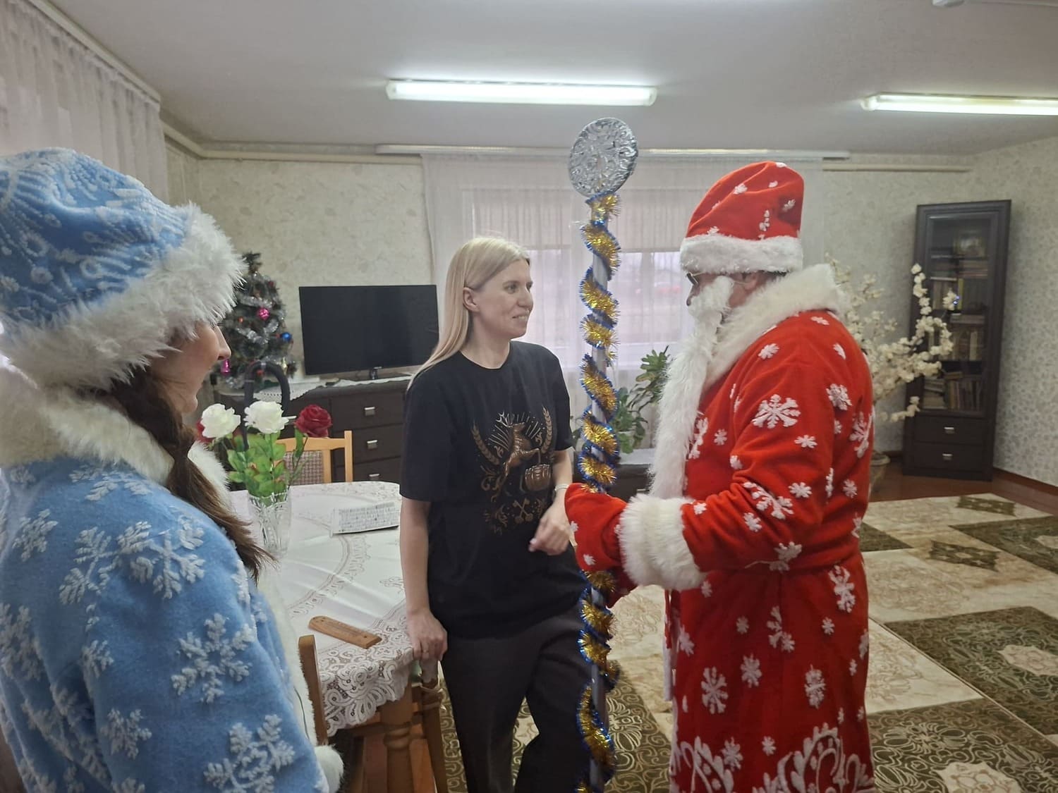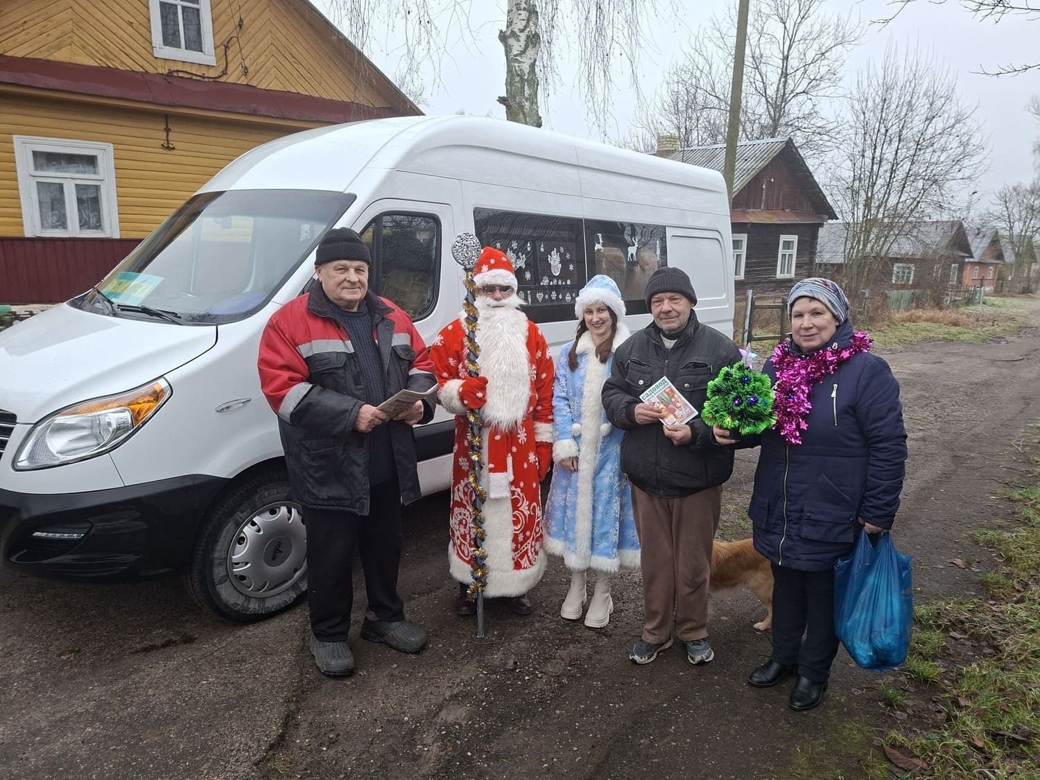 Сотрудники Лидской районной библиотеки имени Янки Купалы организовали поздравительную акцию «В ожидании колядных чудес» на передвижной библиотеке – библиобус для читателей отдаленных деревень: Конюшаны, Далекие. Представ перед читателями в образе Деда Мороза и Снегурочки, библиотекари устроили настоящий праздник: привезли книги для уютного зимнего чтения, подарили праздничные открытки, сладкие подарочки, теплые слова и хорошее настроение. Также поздравили отделение круглосуточного пребывания для граждан пожилого возраста и инвалидов ГУ «Лидский районный территориальный центр социального обслуживания населения».