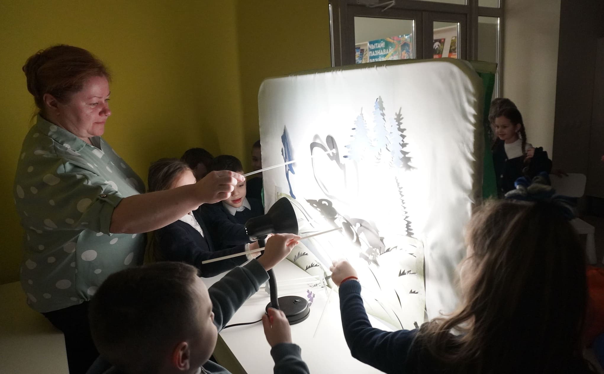 Завораживающим моментом для ребятишек стал просмотр спектакля театра теней «Дзедава рукавічка». Дети охотно попробовали себя в роли актеров, учась управлять сказочными фигурками.
