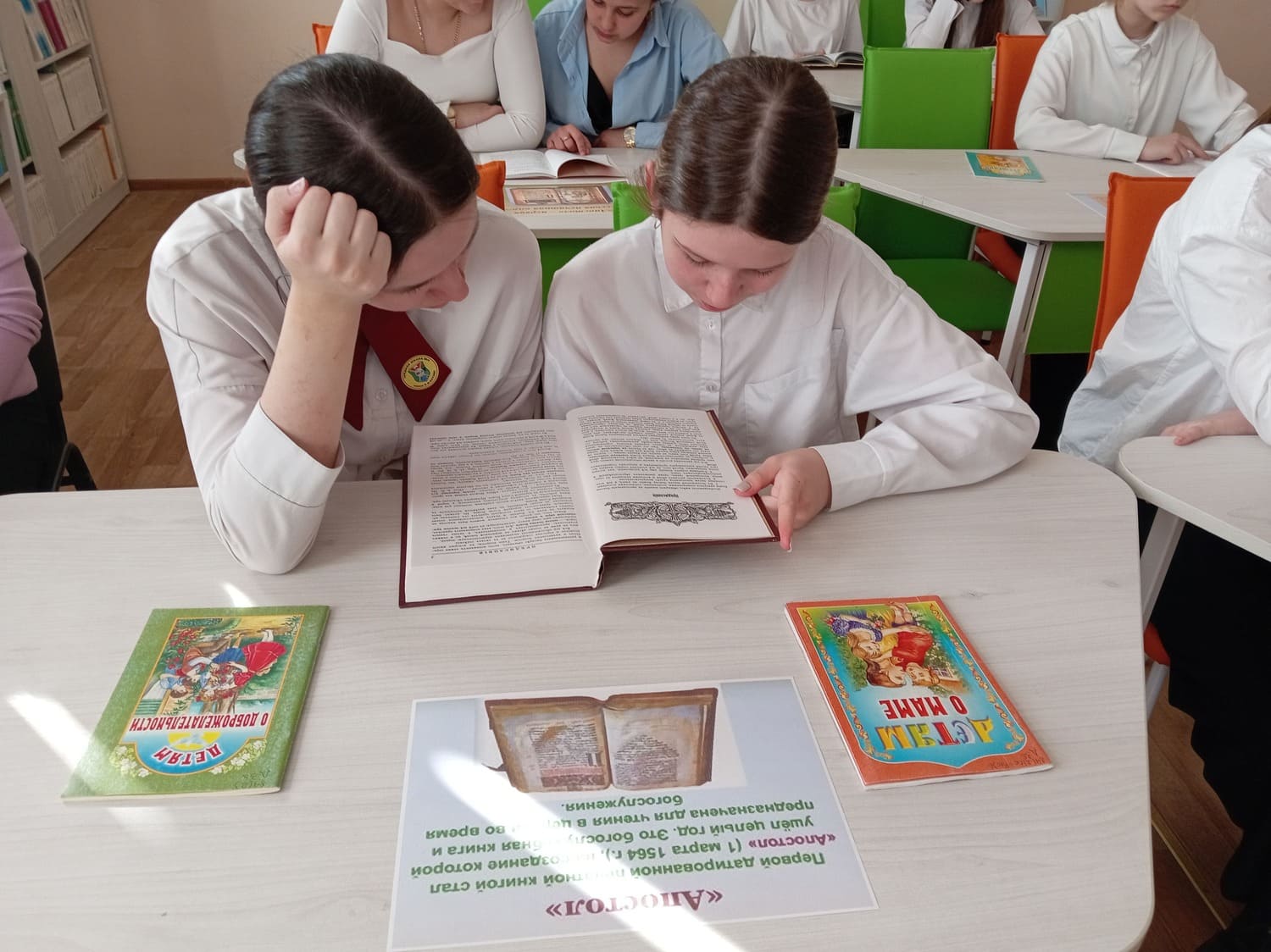 Ко Дню православной книги для учащихся ГУО «Средняя школа №4 им. П. И. Батова г. Слонима» библиотекарь отдела обслуживания и информации Т. А. Севец провела интерактивную экскурсию «Путешествие сквозь страницы: православная книга и её тайны». Дети узнали историю возникновения книги, с большим удовольствием участвовали в викторине, собирали пазл, читали стихи, смотрели видео «Православная книга – путь к духовности».