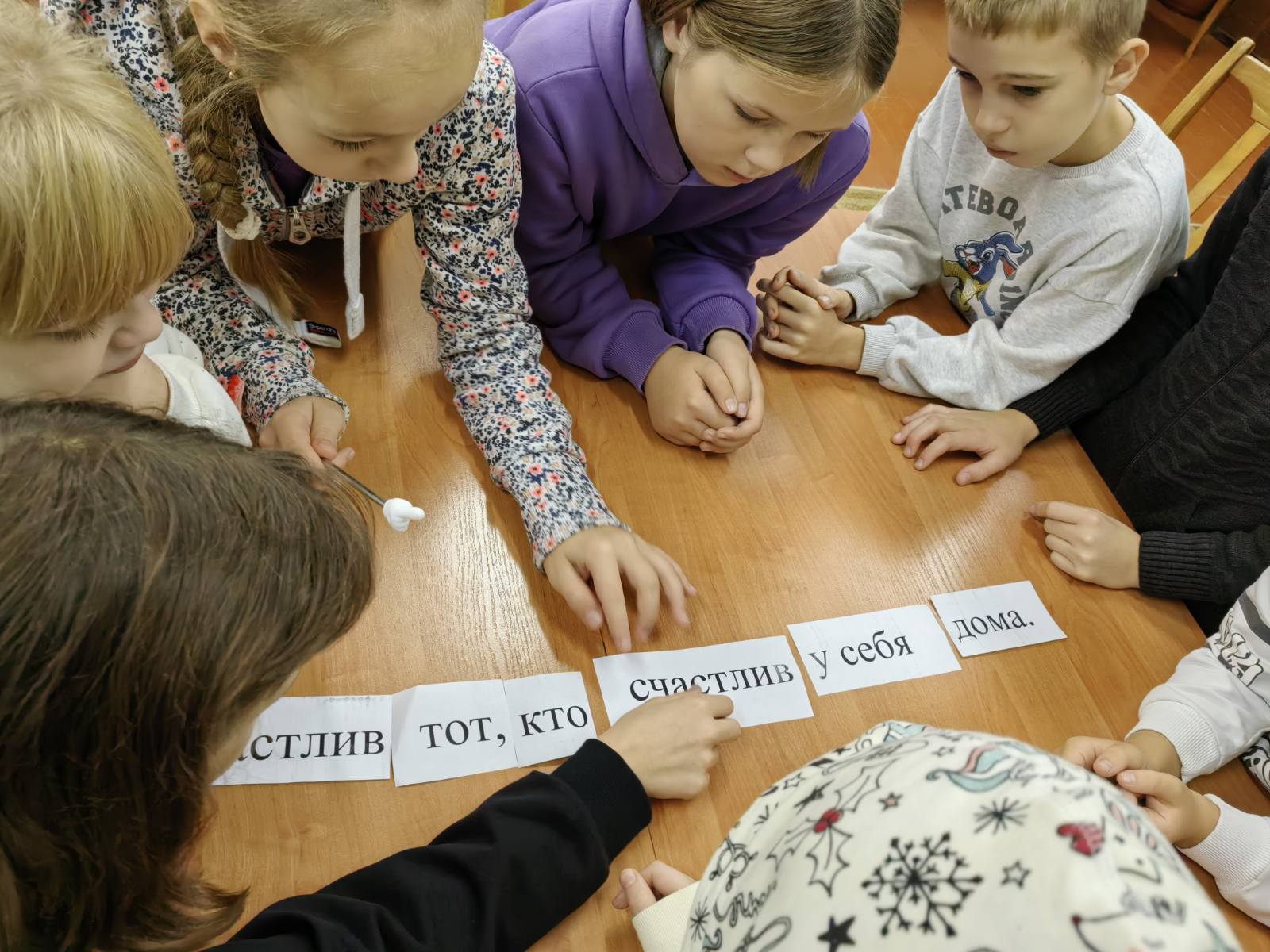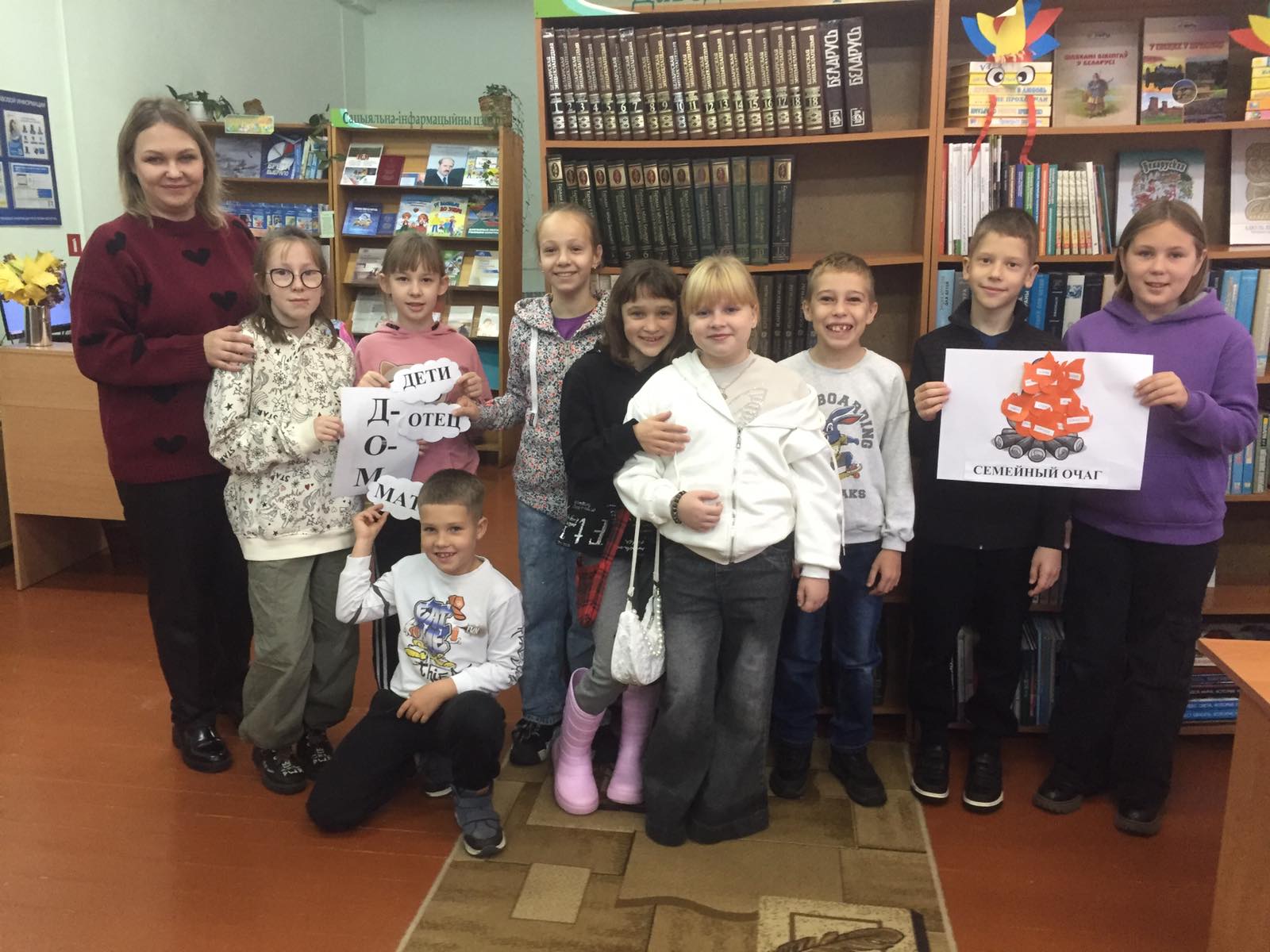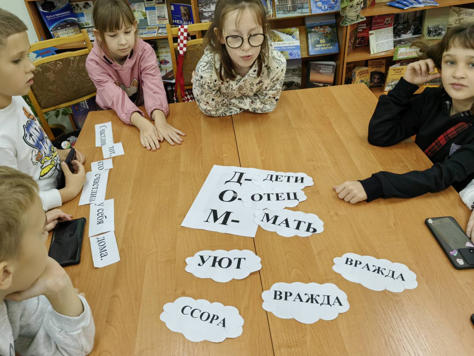 В начале мероприятия библиотекарь рассказала легенду о большой семье. Затем ребята участвовали в конкурсе «Собери слово», отвечали на вопросы викторины, рассказывали, какими ласковыми словами их называют в семье, какие семейные обязанности закреплены за ними.