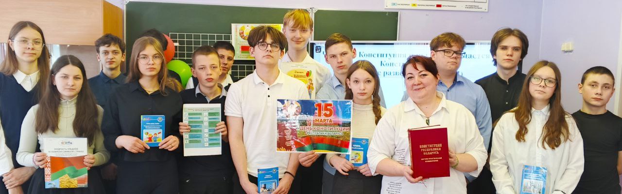 Библиотекарь рассказала молодёжи, что такое Конституция, что записано в ней, когда принята, и почему ее называют Основным Законом. Участники познакомились с основными правами и обязанностями гражданина, а затем, воспользовавшись полученными знаниями, приняли участие в тематической викторине «Конституция Республики Беларусь».