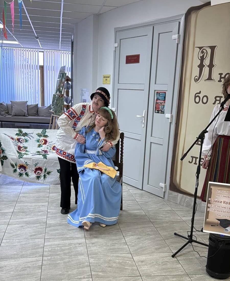 На локации «Код современного автора» собрались знатоки современной прозы и поэзии и сразились в увлекательных конкурсах. Участники с легкостью взламывали «коды» любимых авторов, угадывая стили и цитаты. А настоящим подарком для любителей юмора стала театральная постановка К. Крапивы «Каровін мужык» в исполнении кружка «Литературные переливы». Артисты заставили зрителей и смеяться, и задуматься, напомнив о богатстве родного слова.